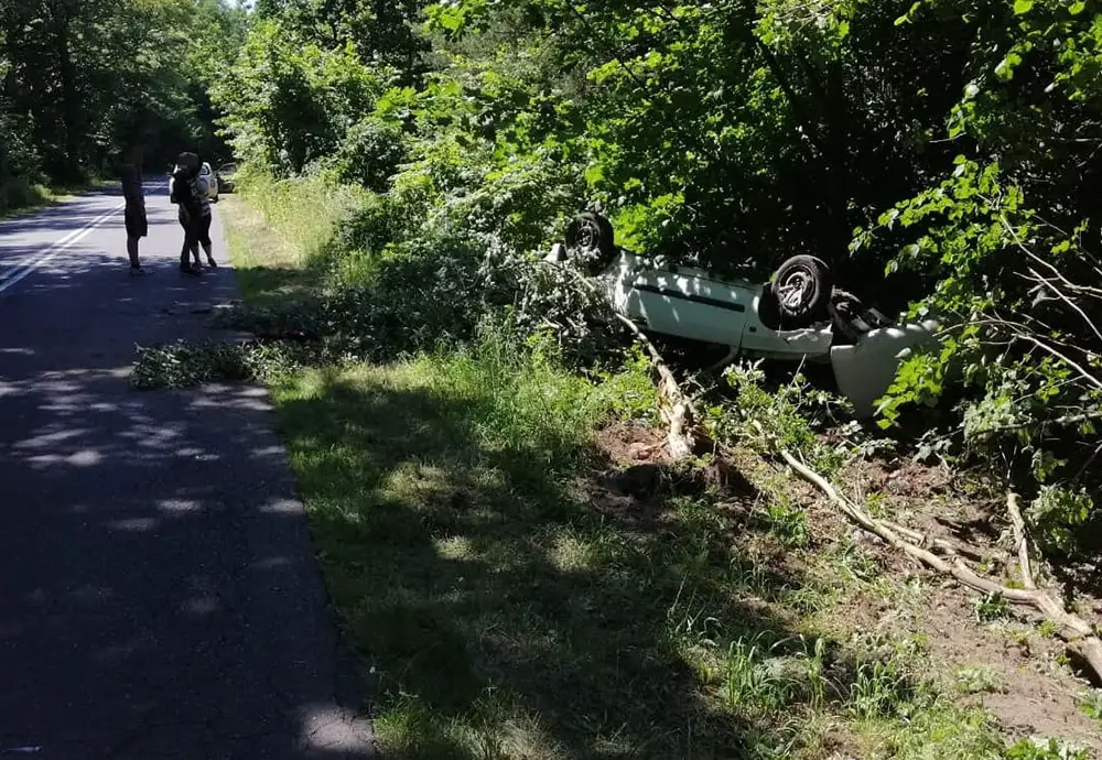 Do groźnie wglądającego zdarzenia doszło we wtorek, 18 czerwca, na drodze na odcinku Skąpie-Cibórz. Renault wypadło z drogi, dachowało i uderzyło w drzewa. Nikomu nic się nie stało. Kierowca nie ma jednak prawa jazdy.