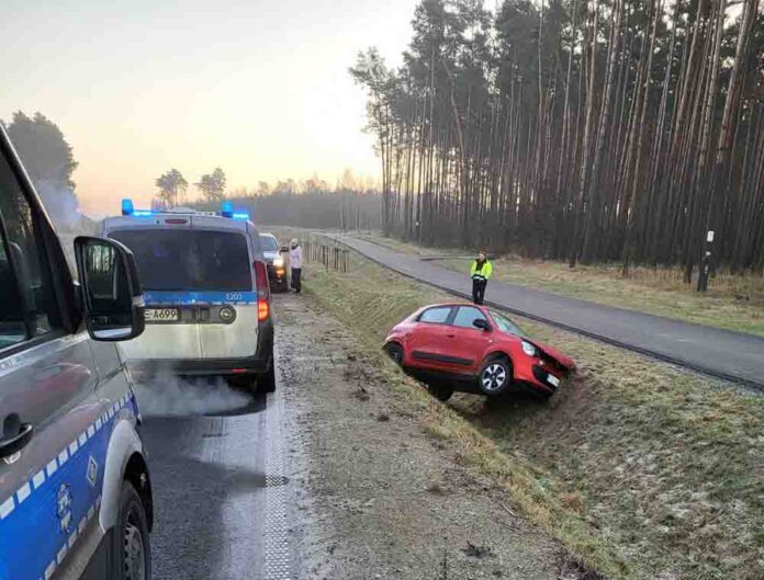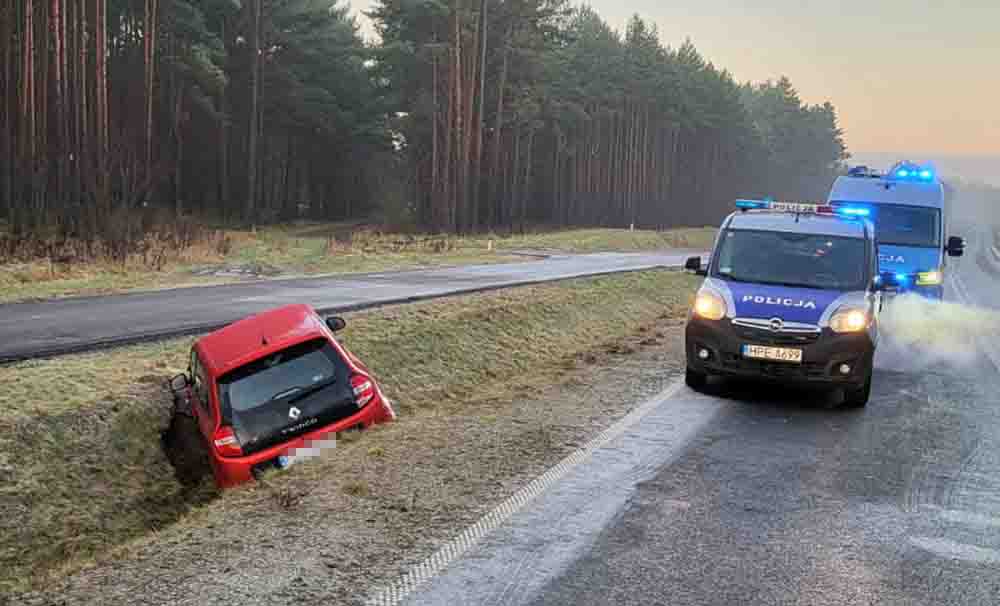 Do zdarzenia doszło w czwartek, 18 grudnia, na drodze wojewódzkiej nr 282. Na śliskiej drodze w poślizg wpadła kierująca Renault. Samochód wpadł do przydrożnego rowu.