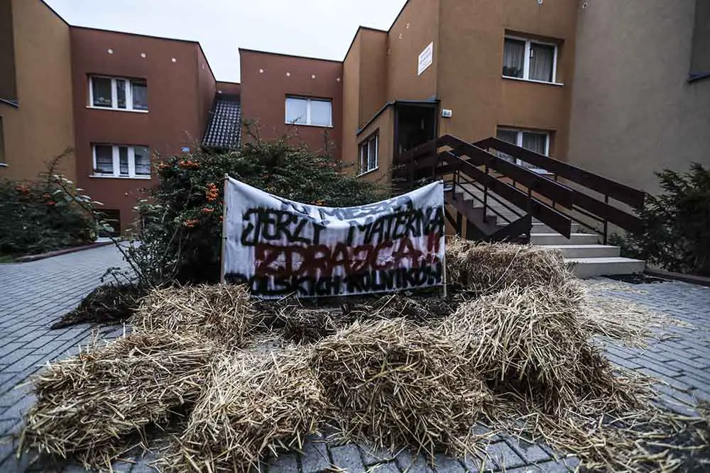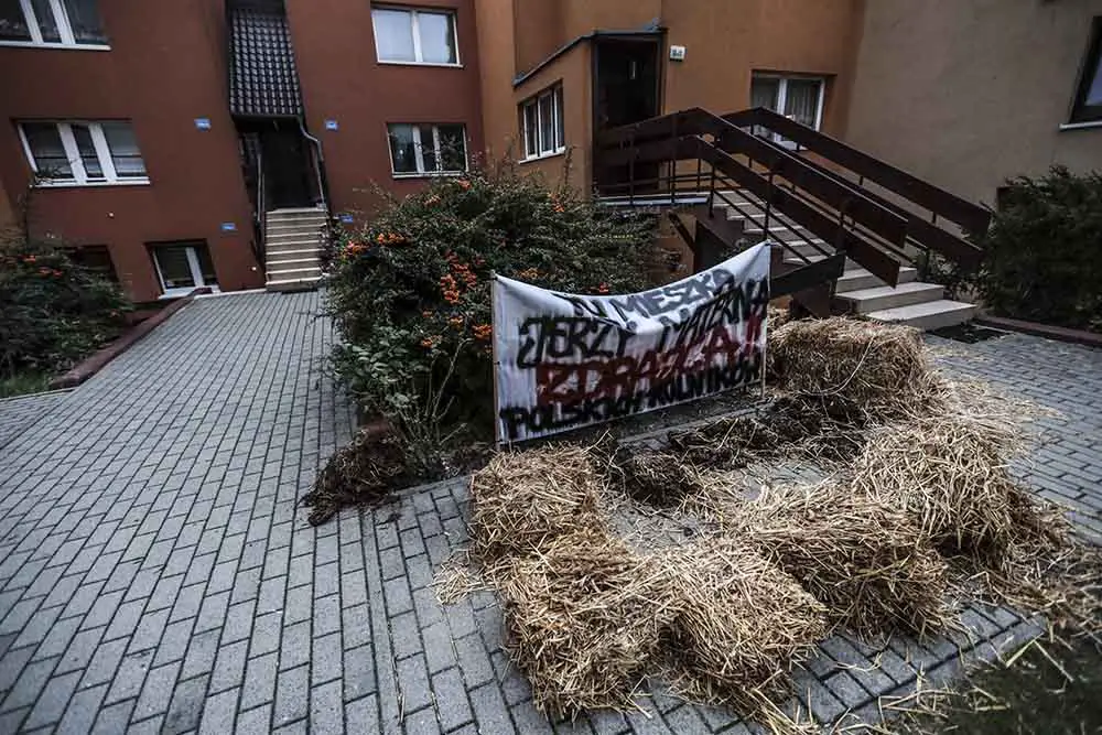 W środę, 21 października, pod domem posła Jerzego Materny (PiS) rozstał rozrzucony obornik i słoma.