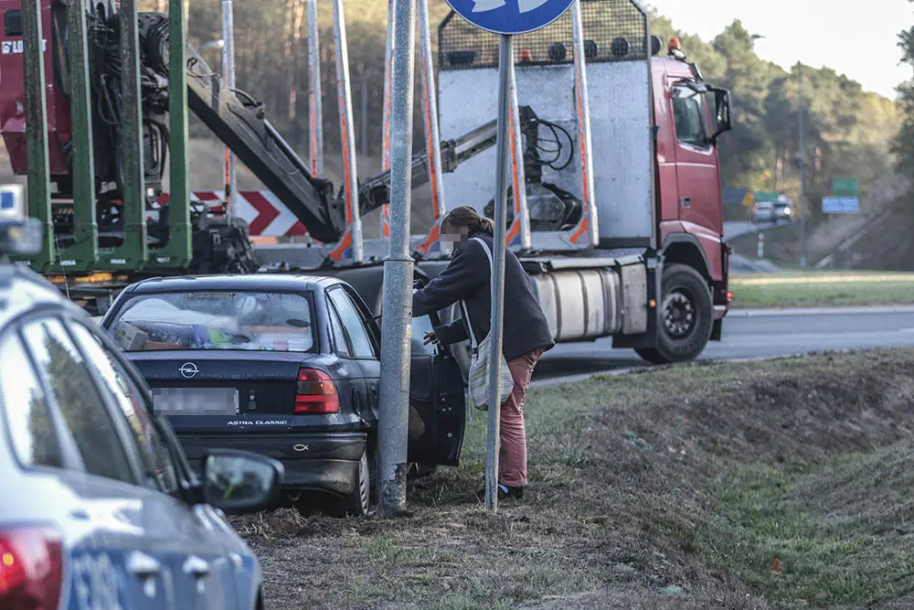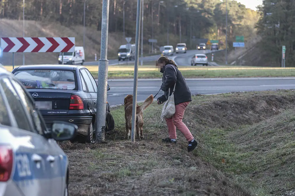 Po chwili kobieta wyszła z namiotu razem z psem. Pani Ewa powiedziała, że wraca z Lipska. Jechała do Poznania. 48-latka mówiła, że w barze na przejściu granicznym w Świecku zjadła pierogi. – Dojeżdżając do ronda dostałam odruchu wymiotnego i wtedy wypadłam z drogi. To przez te pierogi – opowiada 48-latka.