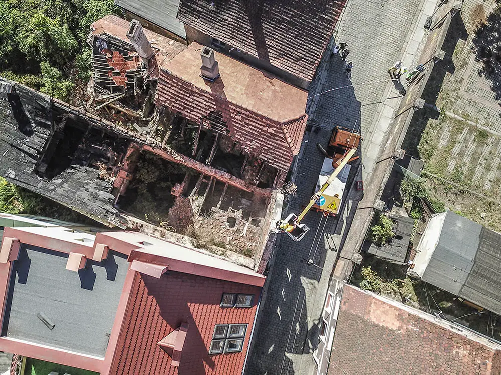 Trwa rozbiórka dwóch przedwojennych kamienic przy ul. Sowińskiego 6 i 8. To walące się rudery. Budynki mają prywatnych właścicieli. Ze względów bezpieczeństwa zamknięta została dla ruchu ul. Sowińskiego przy rozbieranych kamienicach.