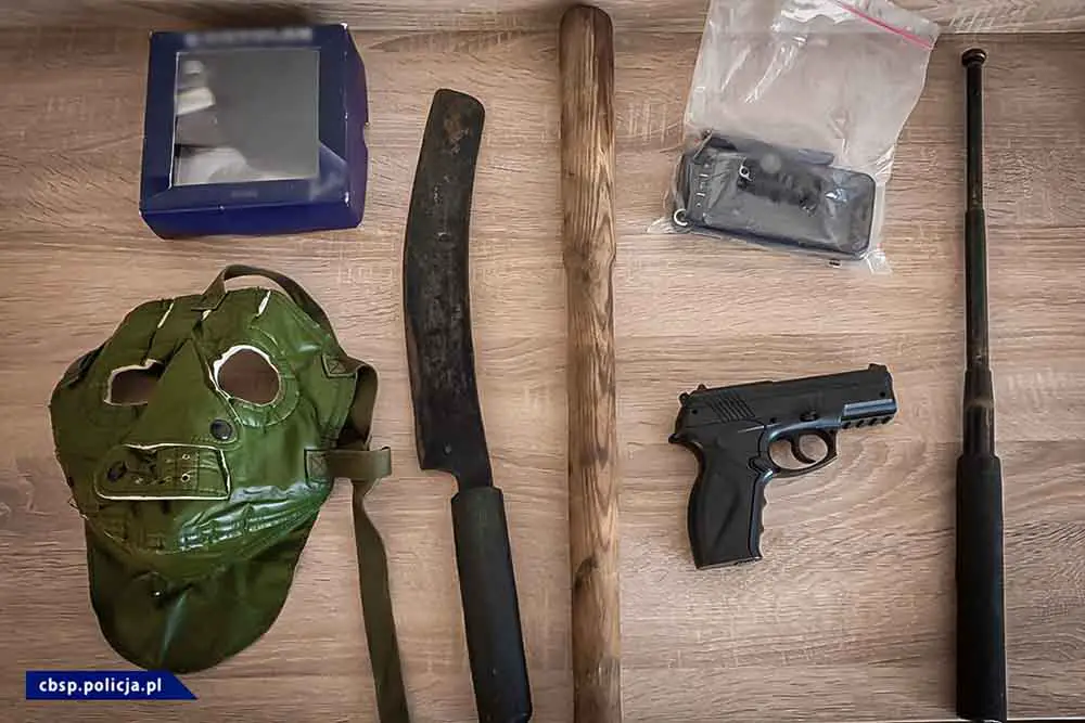 Podczas przeszukania agencji, mieszkań oraz różnych obiektów używanych przez szajkę, policjanci zabezpieczyli amunicję do broni ostrej, atrapę broni palnej, maski, kominiarki oraz maczety, pałki teleskopowe, kij bejsbolowy oraz noże. Zabezpieczono kilkanaście telefonów komórkowych wykorzystywanych w przestępczym procederze. Policja przejęła zapiski i dokumenty rozliczeniowe oraz gotówkę. Na poczet przyszłych kar zabezpieczono ok. 150 tys. zł.