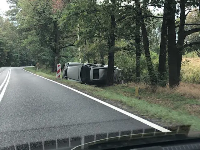 Samochód jakiś czas temu wypadł z drogi. Najprawdopodobniej w poniedziałek, 30 września. Od tego jednak czasu cały czas leży na poboczy trasy z Nowogrodu Bobrzańskiego do Żar. Wrak leży około 5 km od Żar. W dodatku, rozbity samochód stopniowo jest rozkradany.