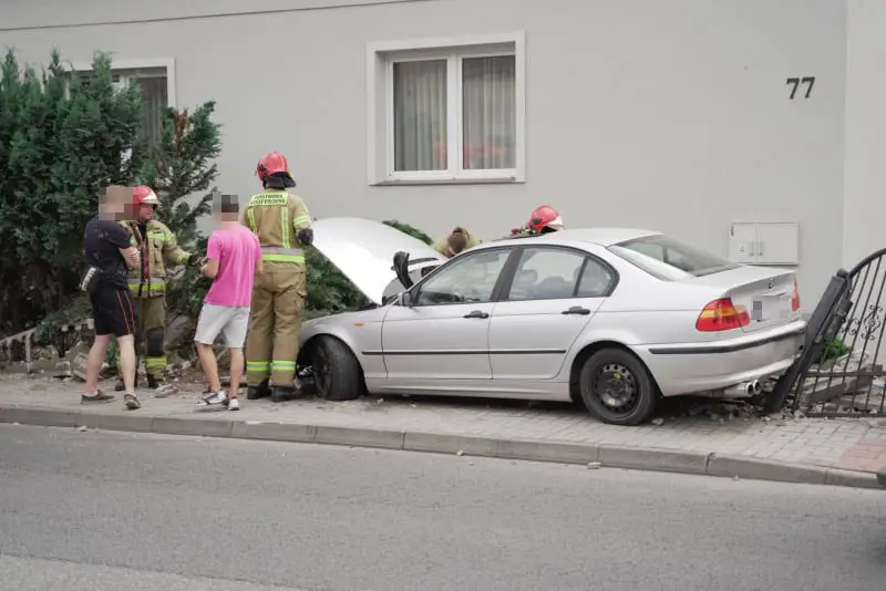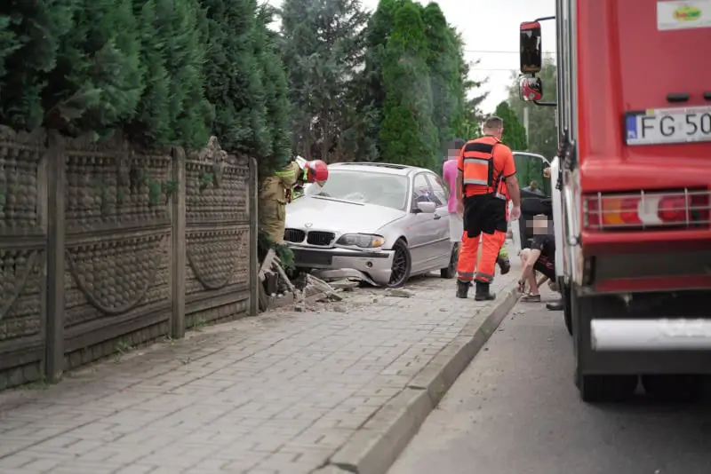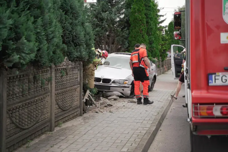 Kierujący rozpędzonym bmw wypadł z drogi na ul. Solidarności w Przylepie. Samochód z dużą siłą uderzył w ogrodzenie niszcząc je doszczętnie.