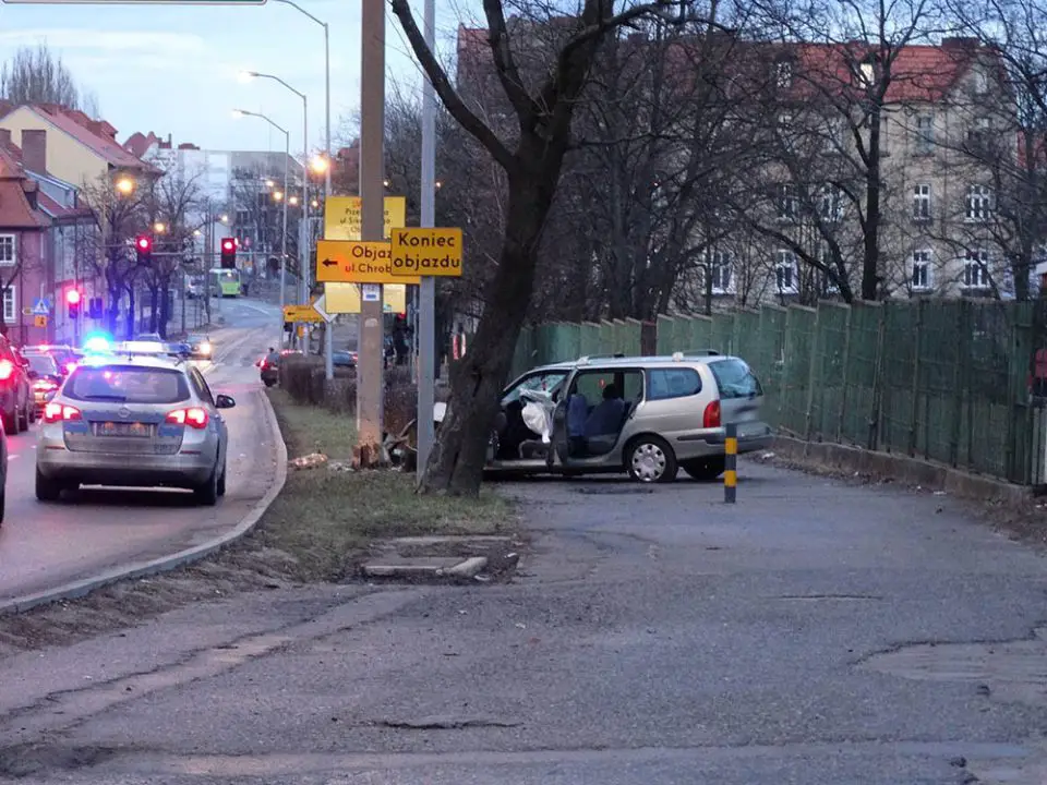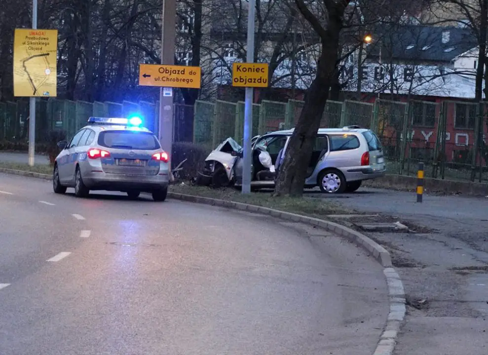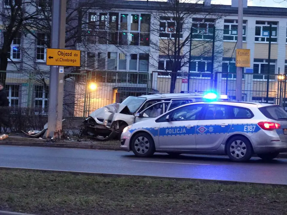 Renault jechało al. Konstytucji 3 Maja w kierunku centrum. Nagle samochód wypadł z drogi i mocno uderzył w lampę. Kierowca wysiadł z samochodu i uciekł z miejsca zdarzenia.