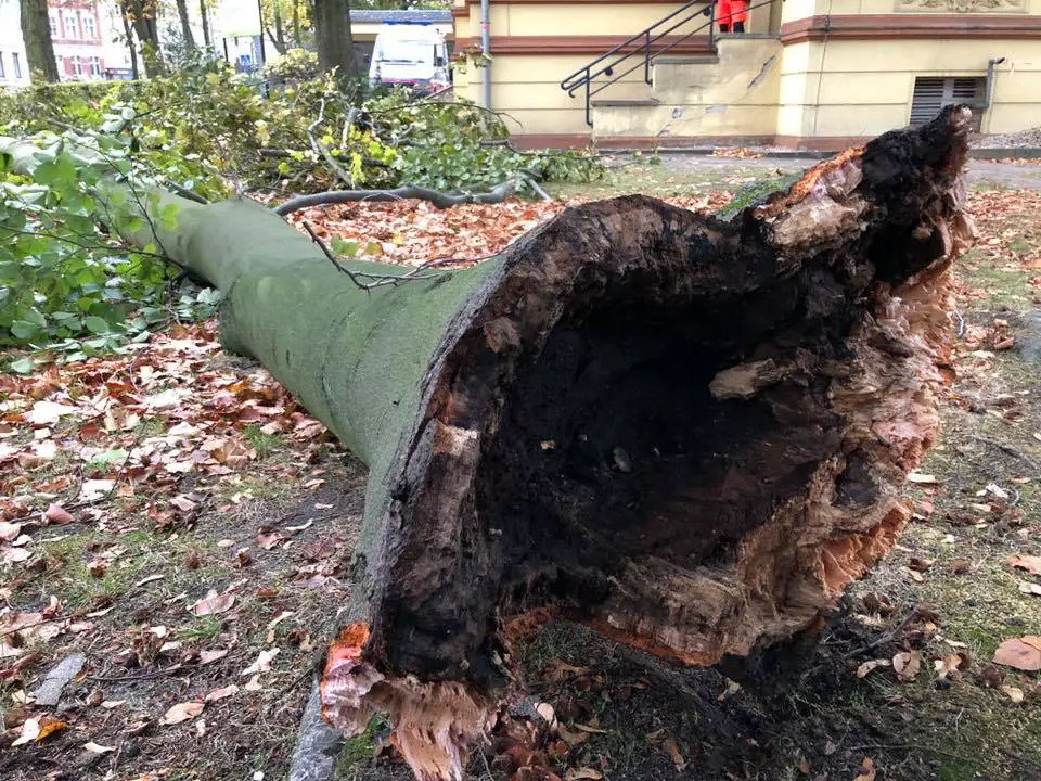 Konar buka runął w nocy. Spadł tuż obok chodnika, z którego korzystają pacjenci wychodzący z ambulatorium pogotowia ratunkowego. Drzewo wyglądające na zdrowe, miało w rzeczywistości przegniły konar.