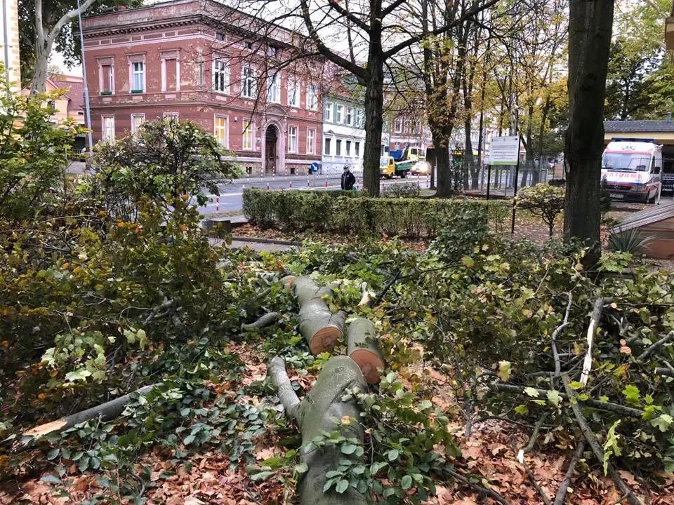 Do zdarzenia doszło w nocy z czwartku na piątek, 26 października. Konar runął tuż przy chodniku dla pacjentów. Strażacy zabezpieczyli miejsce.