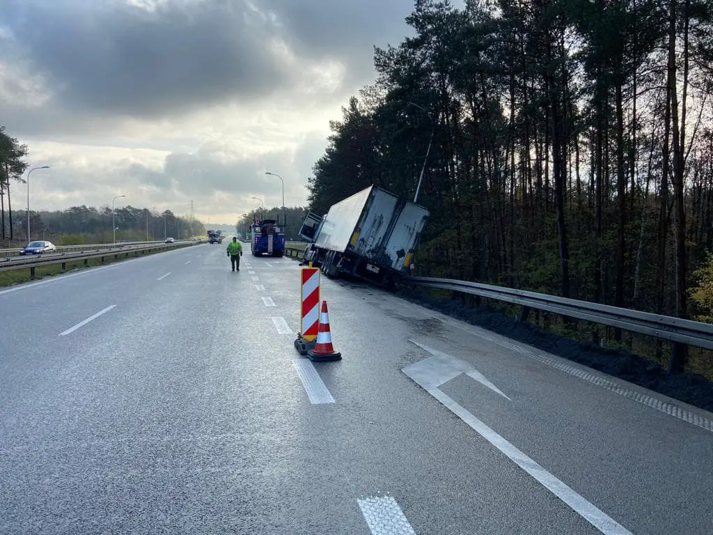 W poniedziałek, 30 listopada, około godz. 11.20 ruszyło podnoszenie ciężarówki, która wypadła z drogi i uderzyła w barierki. Na miejscu jest zielonogórska policja.