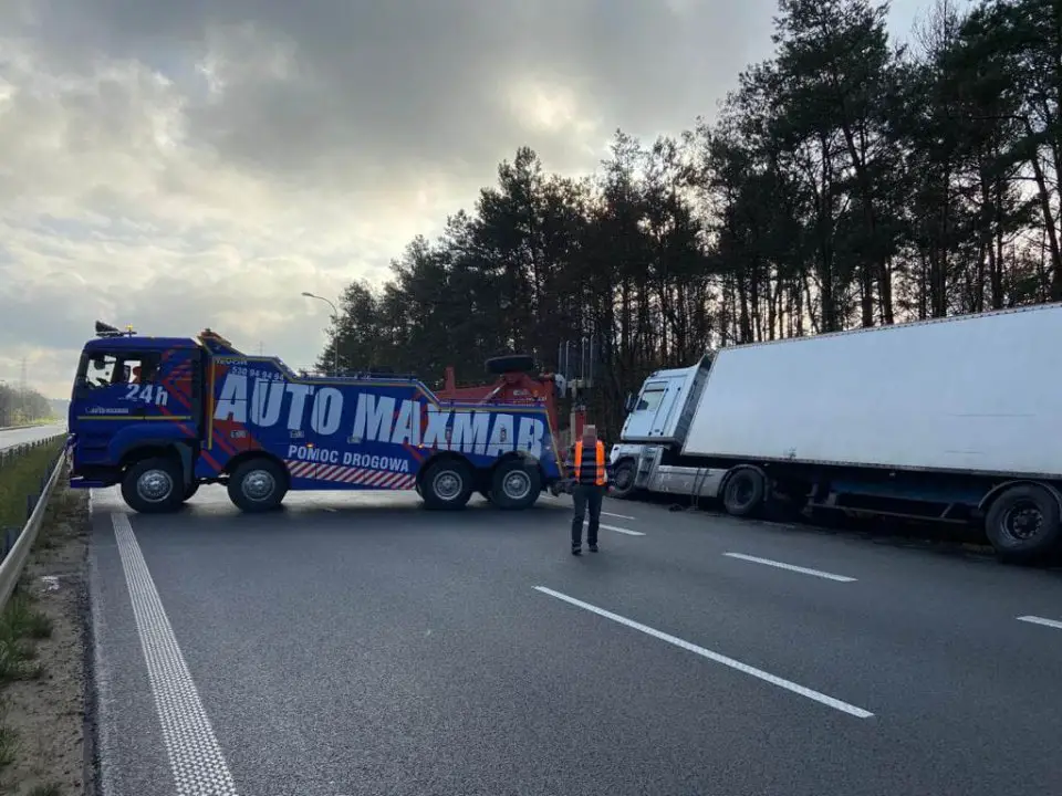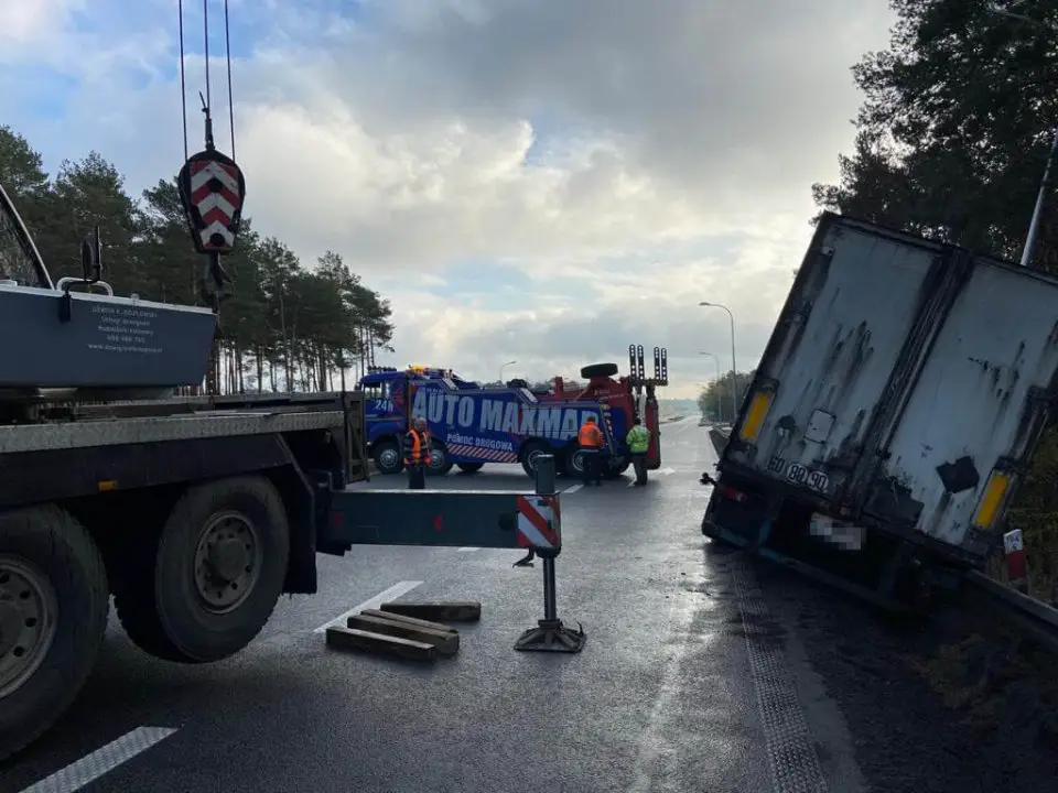 Godz. 12.11 Ciężarówka została podniesiona. Droga S3 w kierunku Nowej Soli odblokowana.