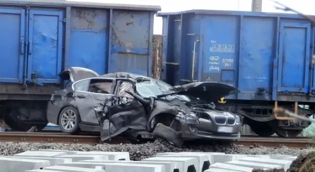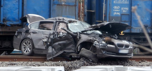 Maszynista z daleka widział bmw wjeżdżające na przejazd. Dawał sygnały kierowcy. Niestety bmw nie zdążyło zjechać z przejazdu.