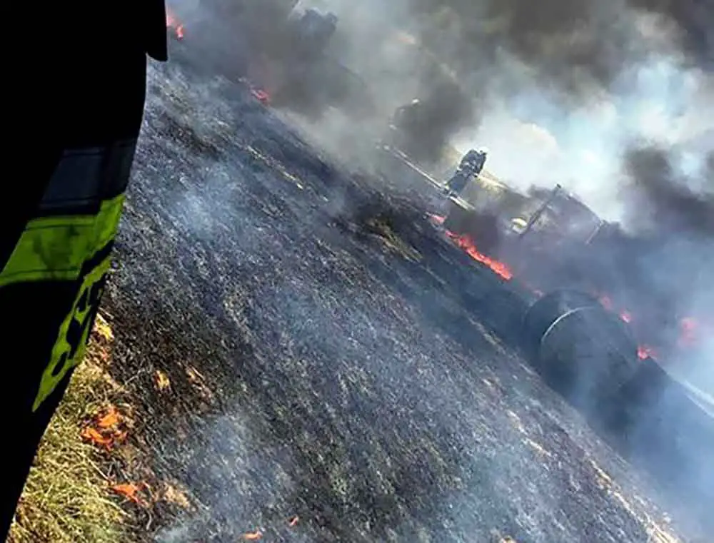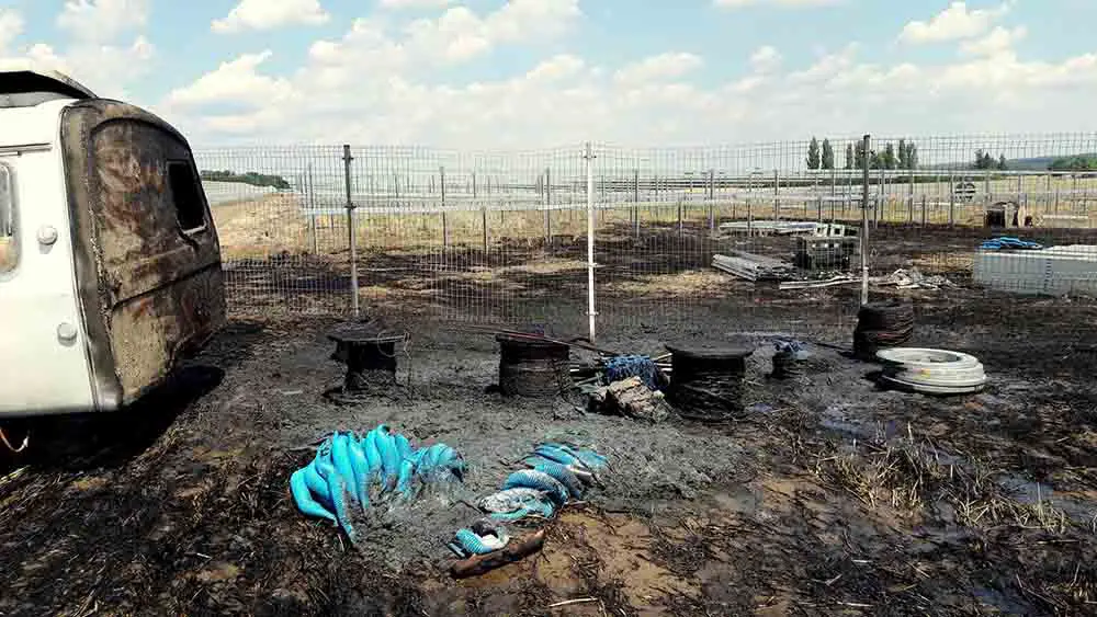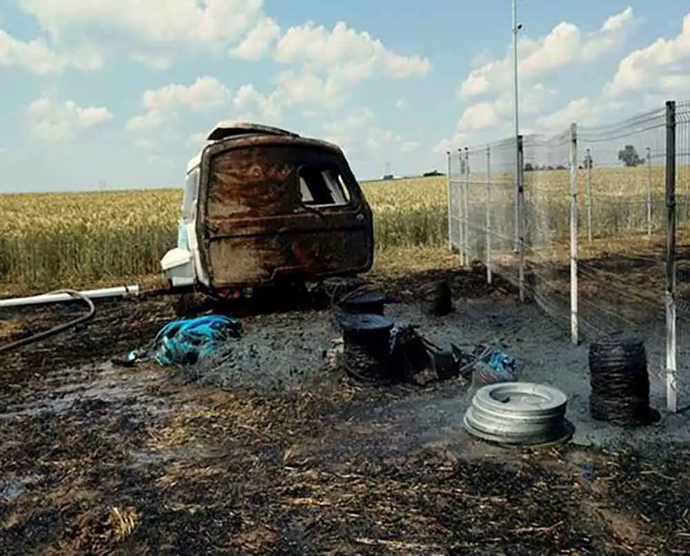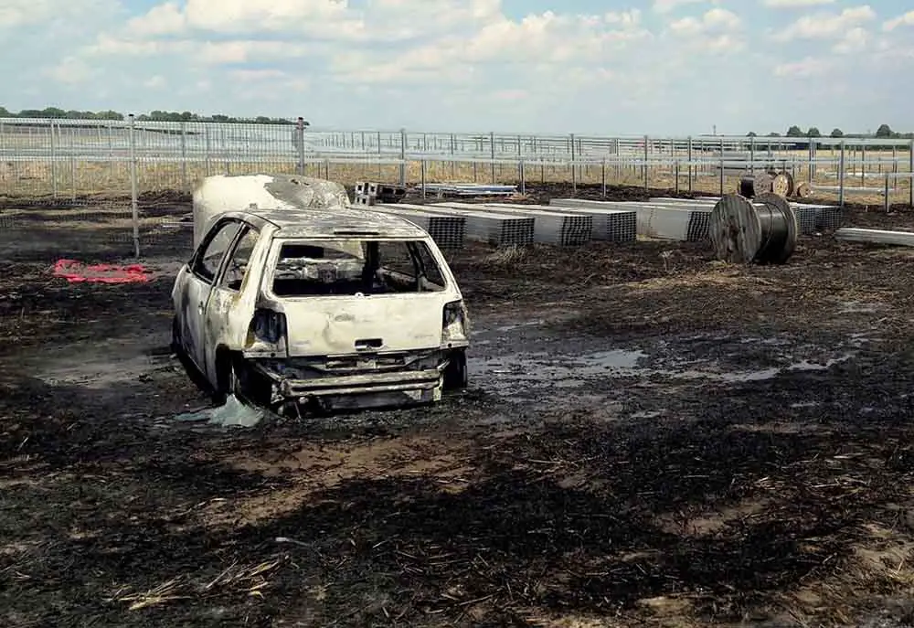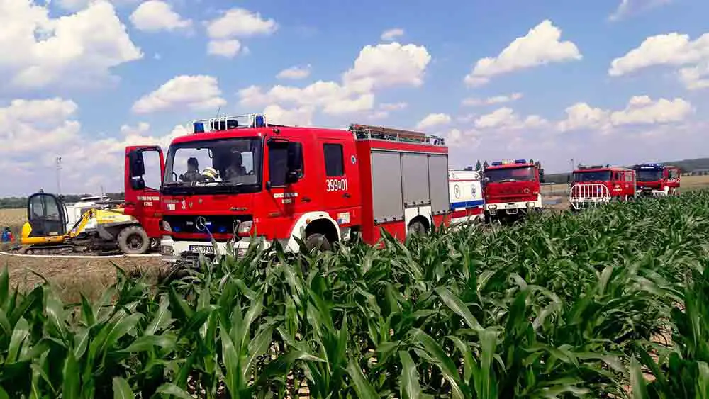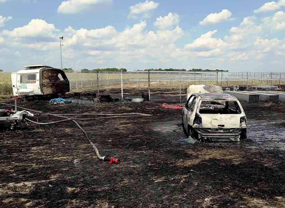 Na miejsce dojechały wozy strażaków OSP Cybinka i OSP Białków. Płonął samochód i przyczepa kempingowa. Z przyczepy strażacy wynieśli dwie butle z gazem o wadze 11 kg, które następnie zostały schłodzone. Poprzez palące się metr po metrze trawy zagrożone były maszyny budowlane oraz otaczające plac budowy łany zboża.