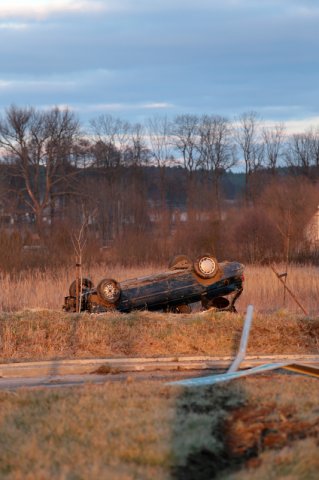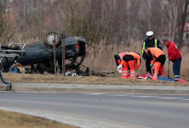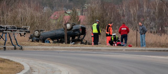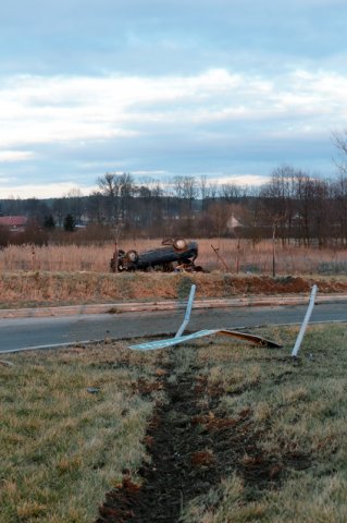 Do zdarzenia doszło w środę około godz. 17.00 na rondzie obwodnicy Nowego Kisielina. Kierowca forda escorta z dużą prędkością wpadł na rondo, przejechał przez jego środek, koziołkował i dachował ponad 20 metrów od drogi. Kierowca trafił do szpitala.