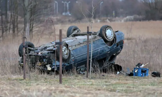 Auto zostało tak mocno rozbite, że ciężko było rozpoznać jego markę. To najprawdopodobniej ford escort.