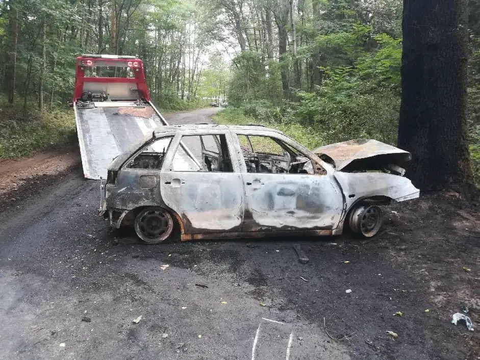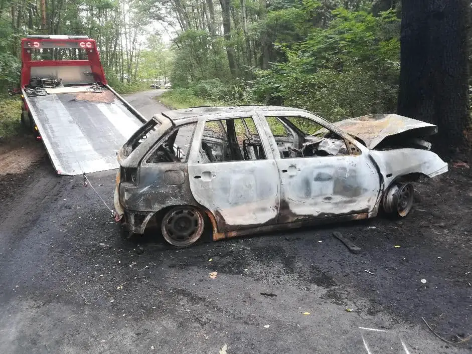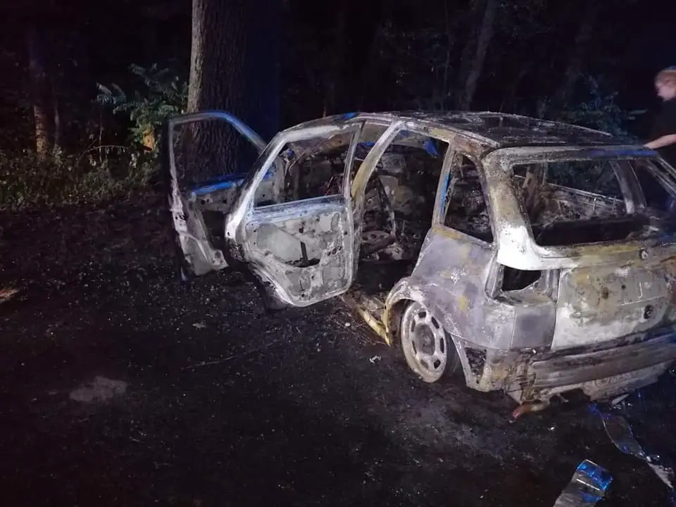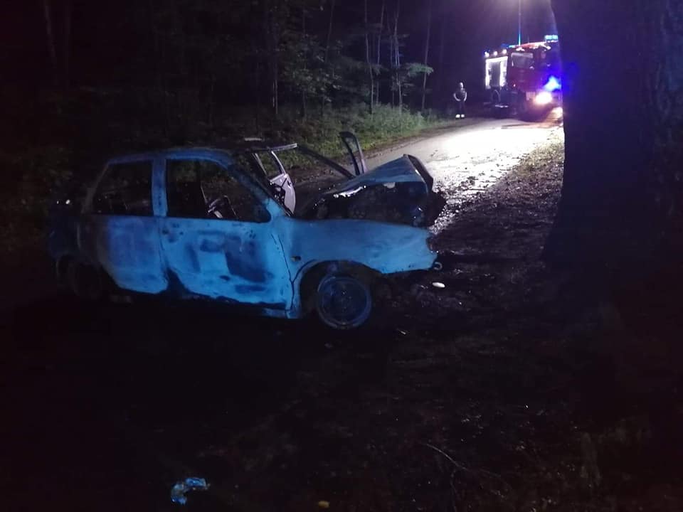 Do bardzo groźnie wyglądającego zdarzenia doszło w czwartek, 5 września koło miejscowości Dąbrowa za Droszkowem. Samochód uderzył w drzewo i natychmiast zaczął się palić.