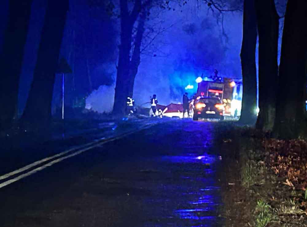 Do śmiertelnego wypadku doszło w poniedziałek, 9 grudnia, w koło miejscowości Wysokie pod Zieloną Górą. Samochód uderzył w drzewo i zapalił się. Kierowca spłonął w aucie.