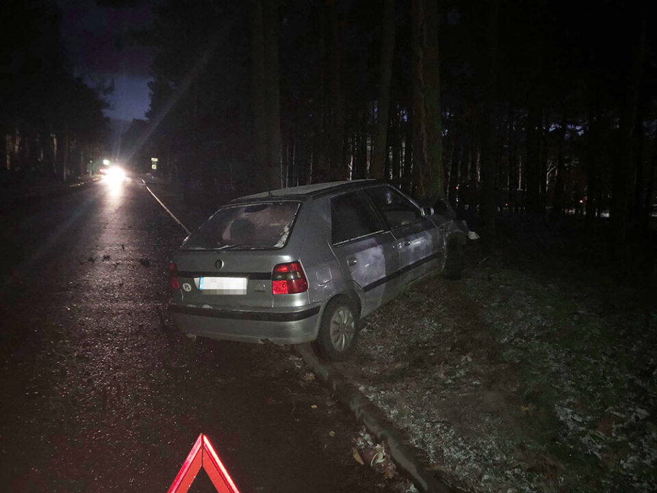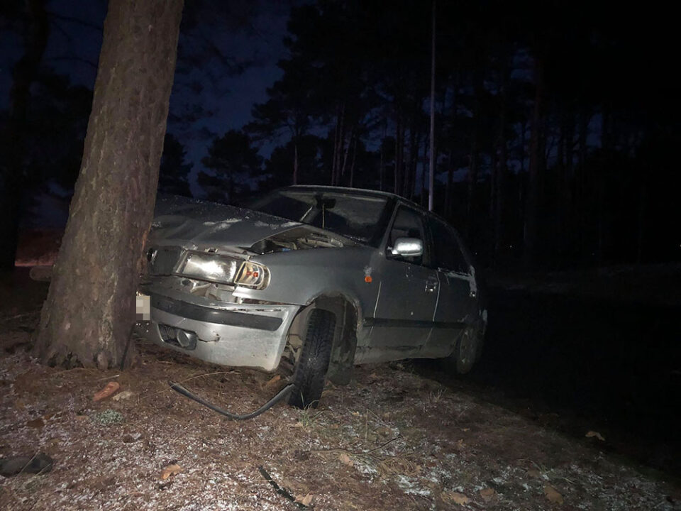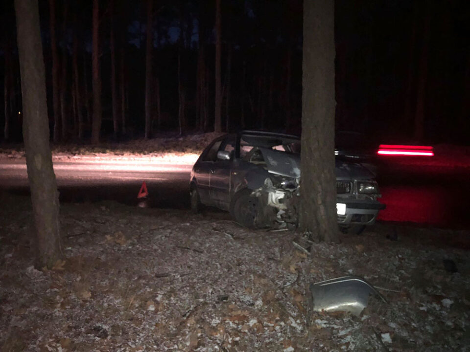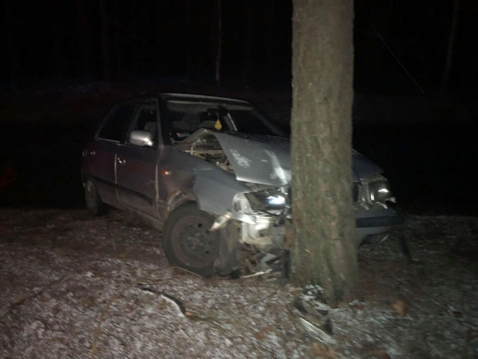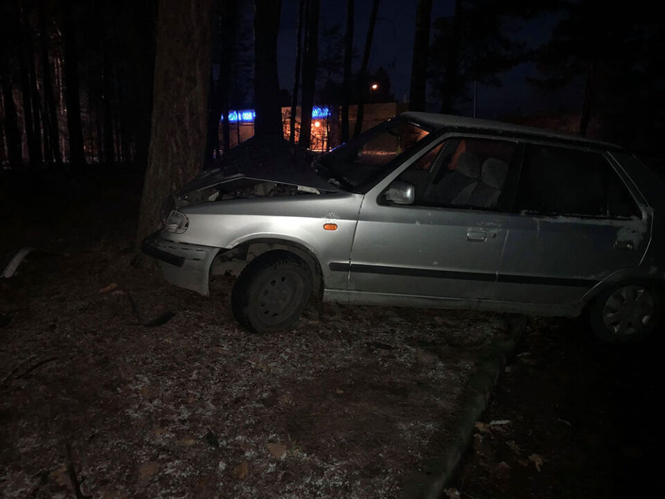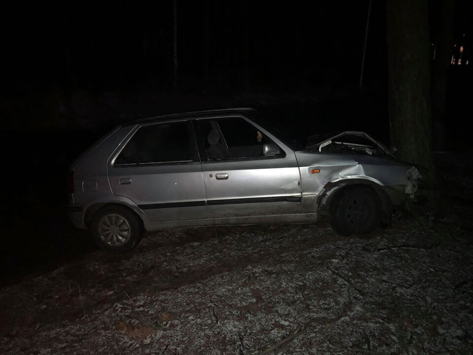 Kierowca skody musiał jechać szybko na krótkim odcinku drogi. Wpadł w poślizg i uderzył w drzewo na poboczu.
