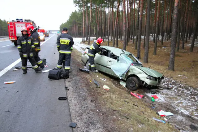 Kierowcę z rozbitego samochodu uwolnili zielonogórscy strażacy. Ekipa karetki pogotowia ratunkowego reanimowała nieprzytomnego mężczyznę. Kierowca został przewieziony do szpitala.