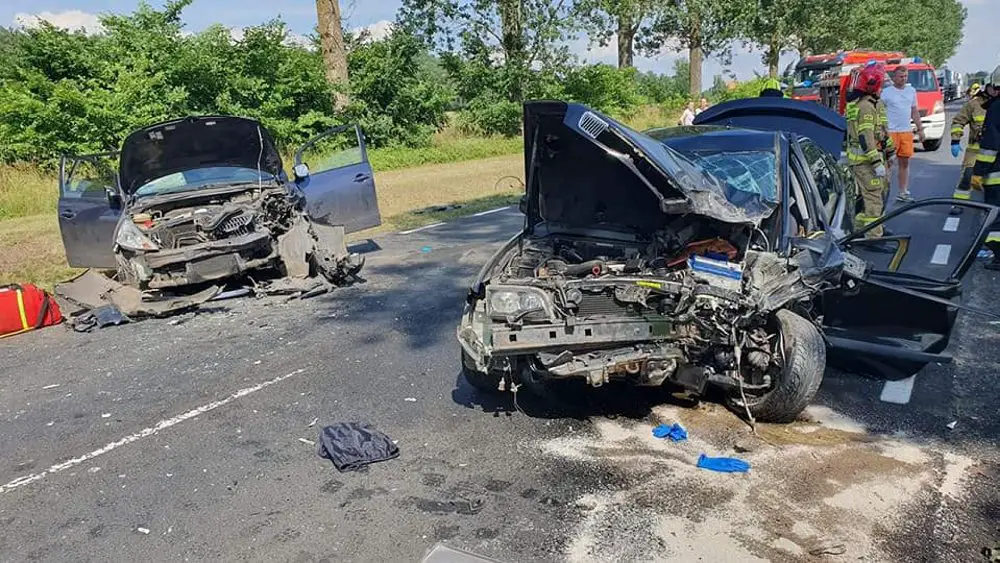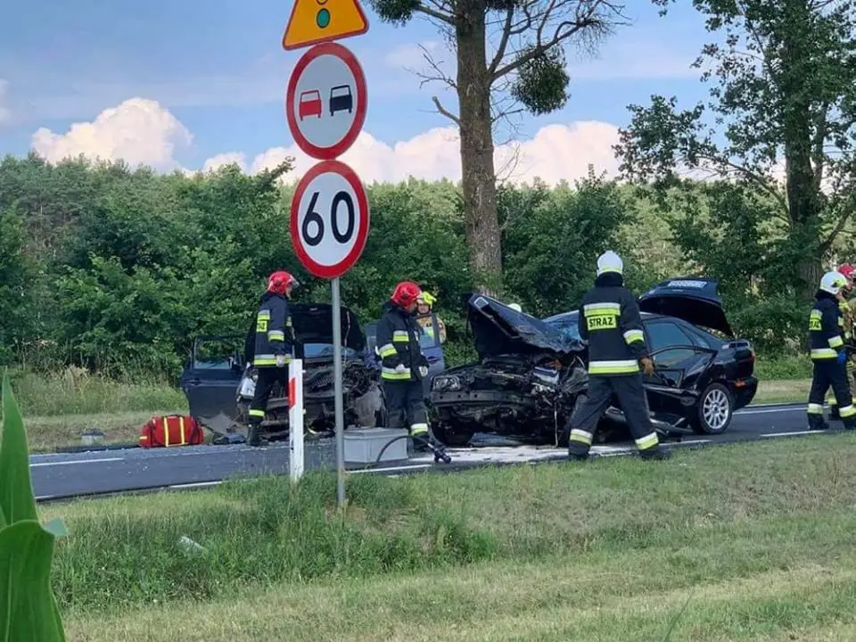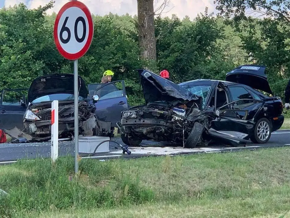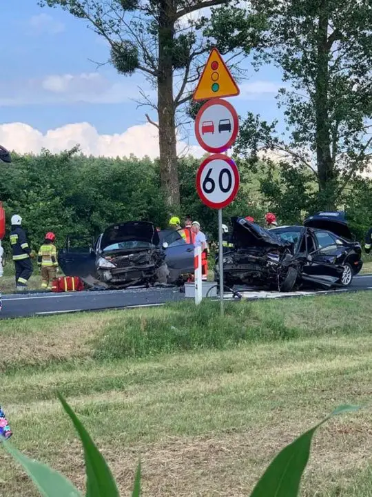 Czołowo zderzyły się volvo oraz mitsubishi. Na miejsce wypadku szybko dotarły służby ratunkowe.