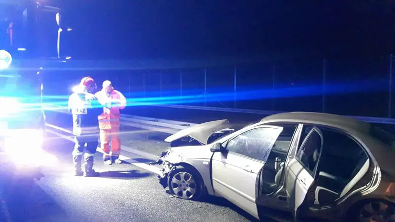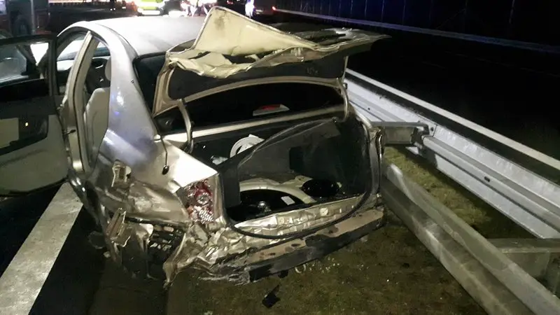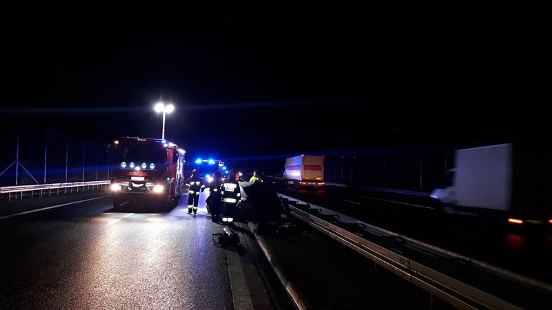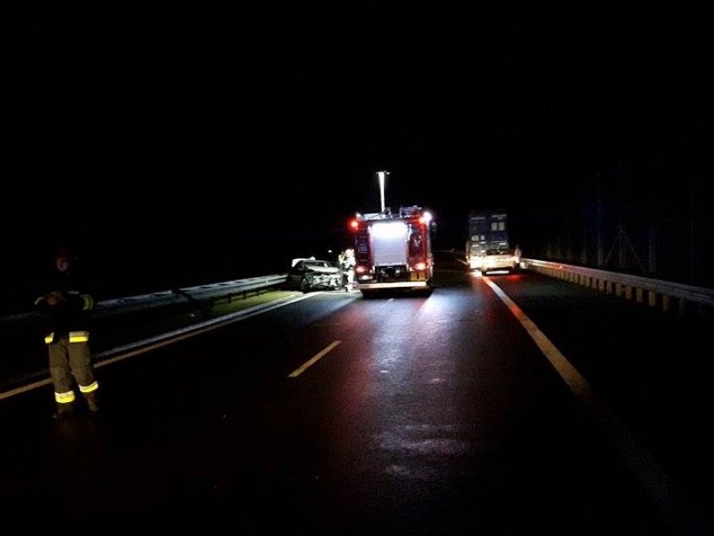 Strażacy ochotnicy ze Skwierzyny kończyli działania na miejscu kolizji. Około godziny 22.40 otrzymali zgłoszenie o pożarze samochodu na S3, na pasach w kierunku Gorzowa. Na miejsce natychmiast wyjechały dwa zastępy ochotników ze Skwierzyny oraz zastęp z Międzyrzecza. Na miejscu okazało się, że kia cerato uderzyła w barierki ochronne. Przód i tył auta były całkowicie rozbite.