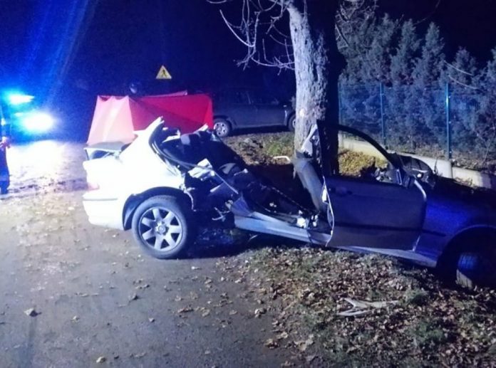 Do tragicznego wypadku doszło w sobotę, 20 listopada około godziny 22.30 na ul. Wspólnej. Jak wynika ze wstępnych ustaleń policji, 24-letni mieszkaniec Sieradza kierujący bmw, na łuku drogi stracił panowanie nad pojazdem i uderzył w drzewo.