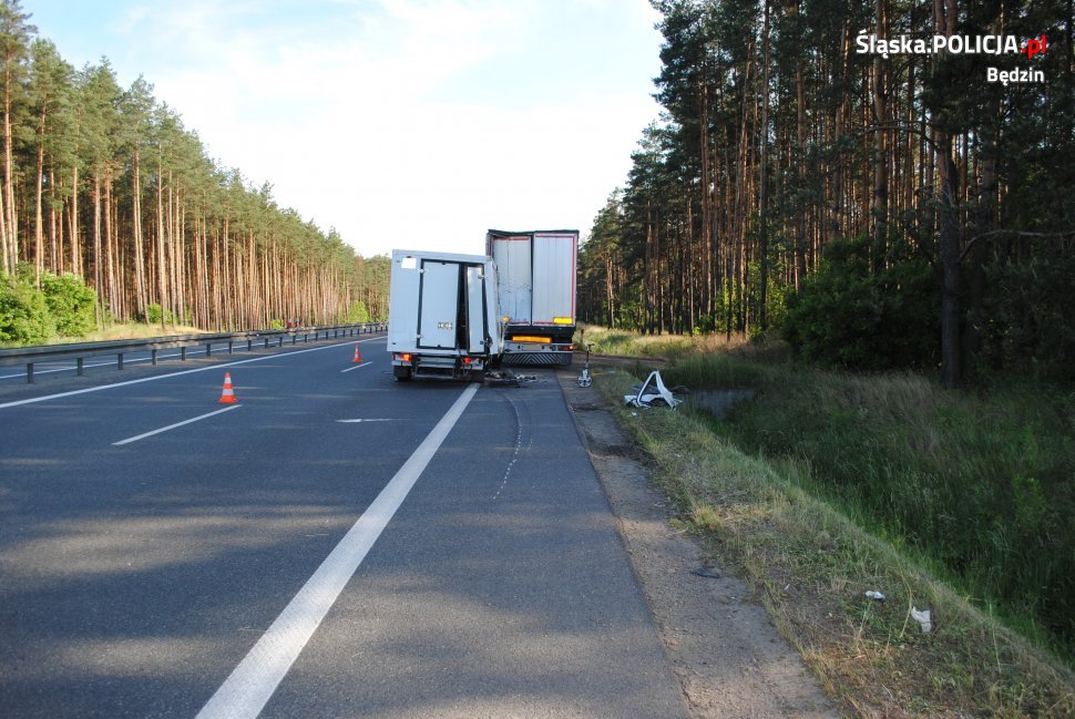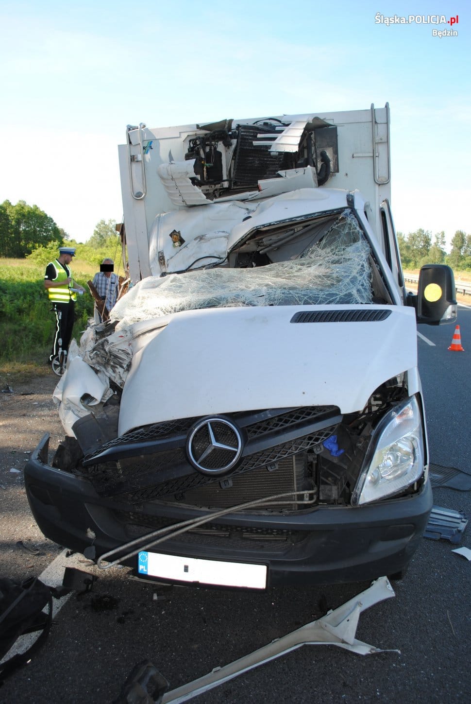 Kierowca dostawczego mercedesa, 40-letni mieszkaniec Będzina najprawdopodobniej nieprawidłowo wykonał manewr omijania stojącej na pasie awaryjnym ciężarówki. Uderzył w tył naczepy.