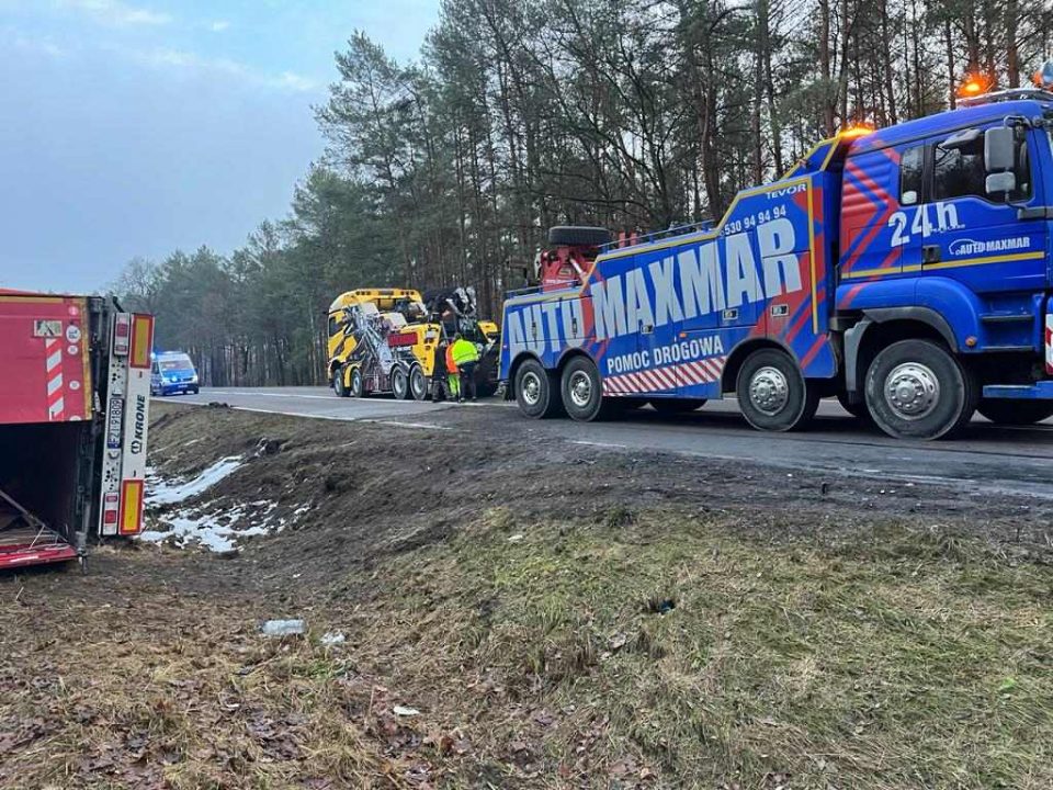 Utrudnienia trwały do późnej nocy. Rozbite samochody na polecenie zielonogórskiej policji zabezpieczyła pomoc drogowa Maxmar.