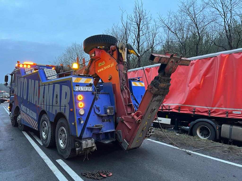 Utrudnienia trwały do późnej nocy. Rozbite samochody na polecenie zielonogórskiej policji zabezpieczyła pomoc drogowa Maxmar.