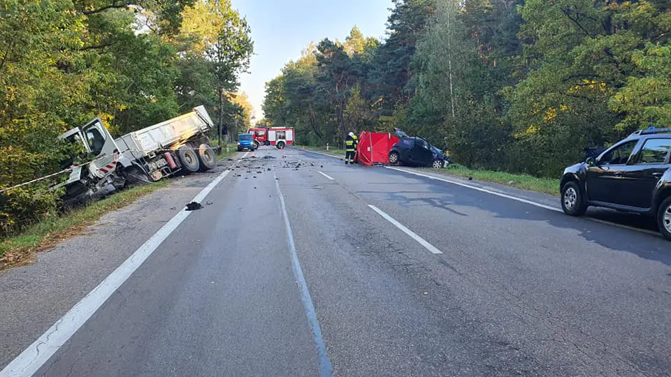 Jak wstępnie ustalili policjanci na miejscu tragedii, 47-letni kierujący mitsubishi zjechał prosto pod jadącą z naprzeciwka ciężarówkę. Doszło do potężnego zderzenia.