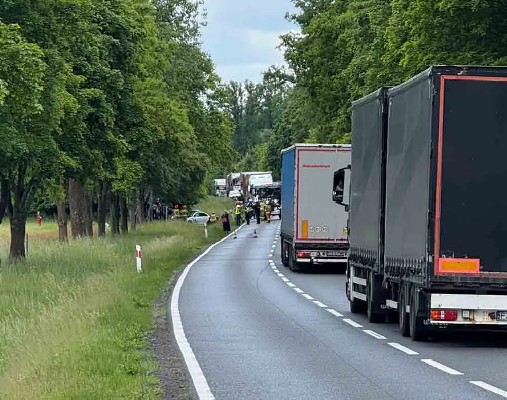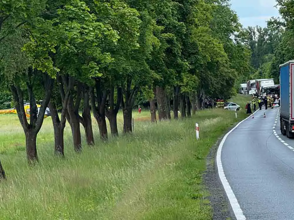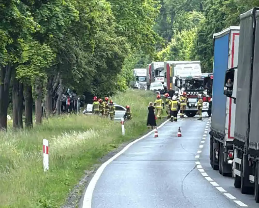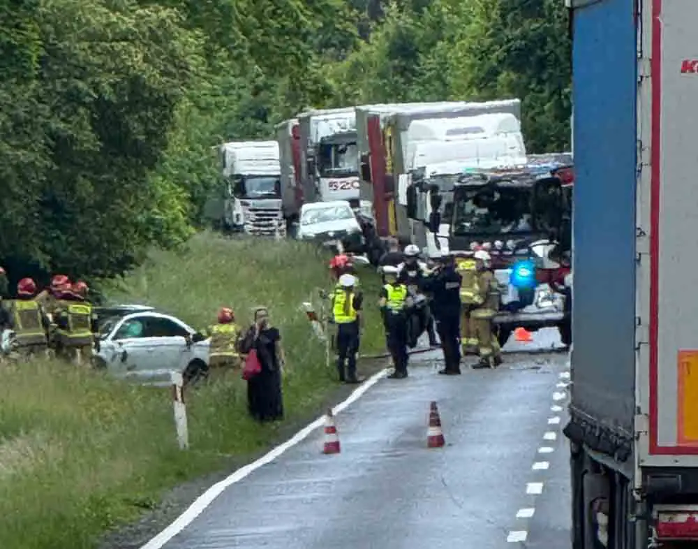 Wiadomo, że po zderzeniu oba samochody wypadły z drogi. Jedno leży na boku i prawdopodobnie uderzyło w drzewo. Na miejscu są wozy straży pożarnej, żarska policja oraz wylądował śmigłowiec Lotniczego Pogotowia Ratunkowego. Droga jest zablokowana.