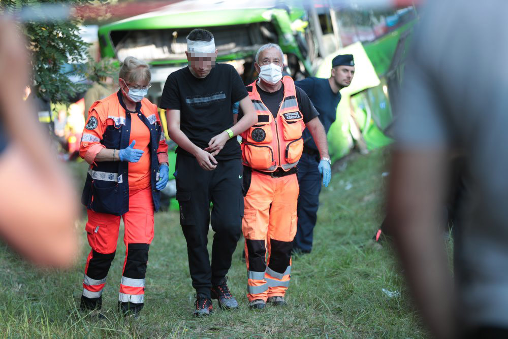 Medycy opatrywali rannych i kwalifikowali do pierwszeństwa zabrania do szpitala. Śmigłowce zabrały do szpitali najciężej rannych, w tym kierowcę autobusu. Do szpitali trafiło 41 osób. Trzy w ciężkim stanie.