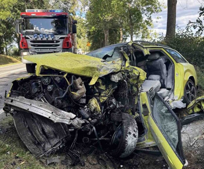 Jak informuje komenda policji w Bytowie, do wypadku doszło w czwartek po południu. Na drodze krajowej nr 20 w pobliżu miejscowości Tuchomek czołowo zderzyły się jeep Grand Cherokee i Audi A4. Siła uderzenia ogromna. Audi zostało zmiażdżone. Niestety na miejscu wypadku zginał 25-letni mężczyzna, kierowca Audi. Ranna została 22-letnia pasażerka Audi, która została przewieziona do szpitala. Do szpitala trafił również ranny 70-letni kierowca Jeepa.