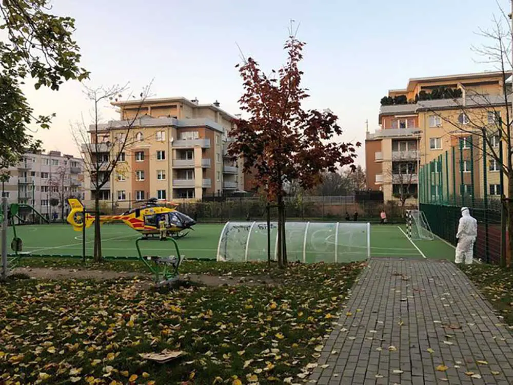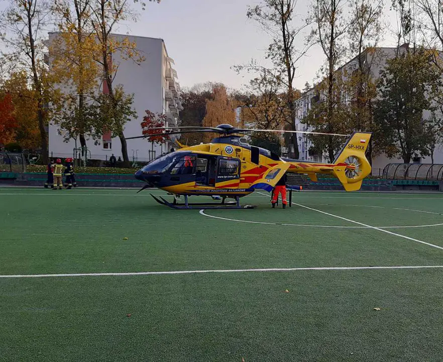 Śmigłowiec Lotniczego Pogotowia Ratunkowego w niedzielę, 8 listopada, wylądował na boisku na ul. Cyryla i Metodego. Wysłano śmigłowiec, ponieważ nie było wolnej karetki.