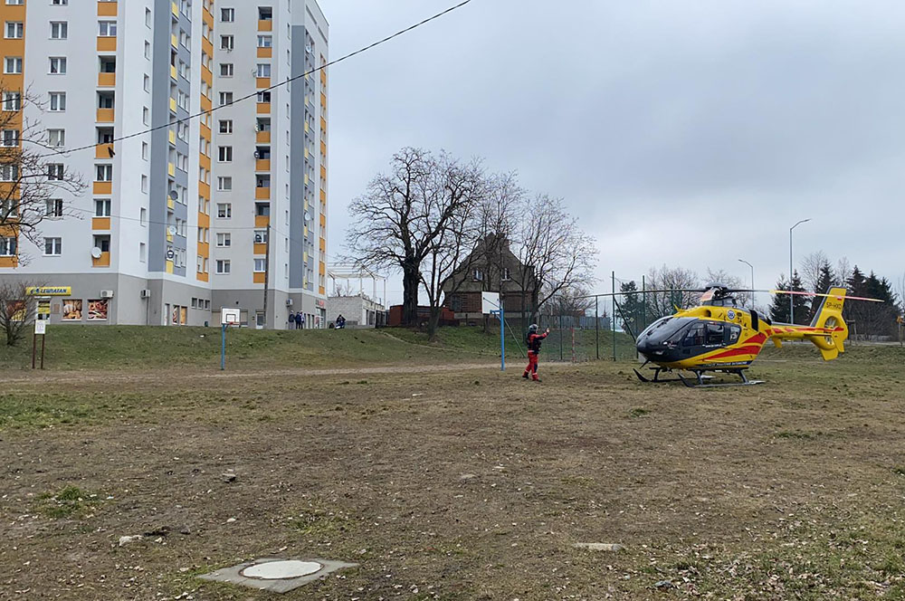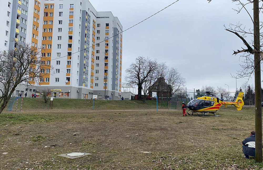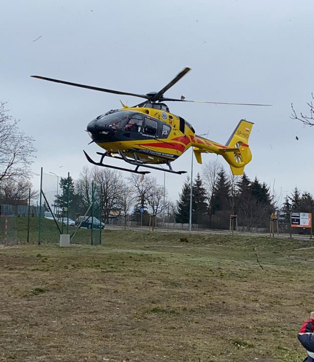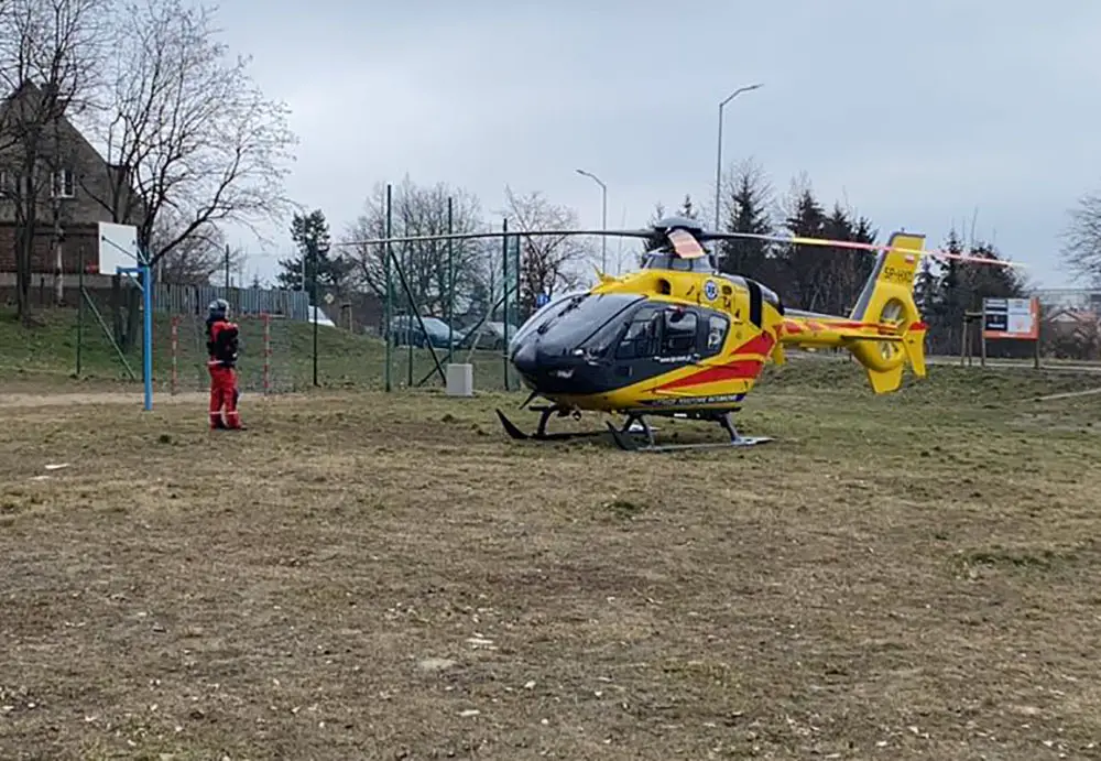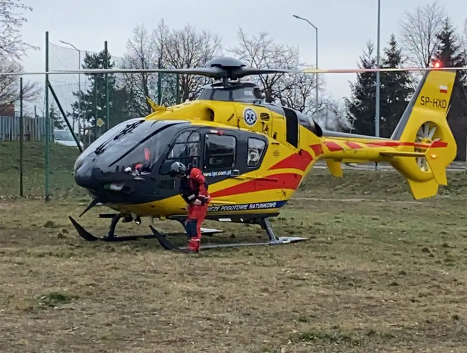 Do zdarzenia doszło w czwartek, 18 marca. Śmigłowiec lotniczego pogotowia ratunkowego wylądował na palcu zabaw przy ul. Objazdowej. Na miejscu jest również straż pożarna.