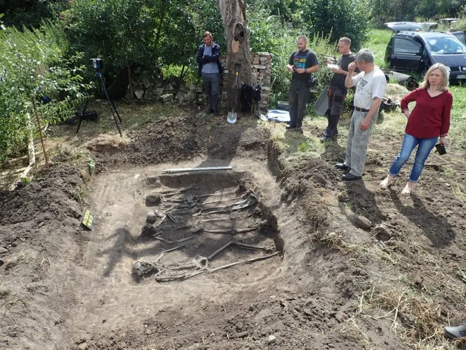 W ogrodzie jednego z gospodarstw zlokalizowali masowy grób. Odkopali mogiłę czterech żołnierzy niemieckich poległych w trakcie walk w lutym 1945 r.