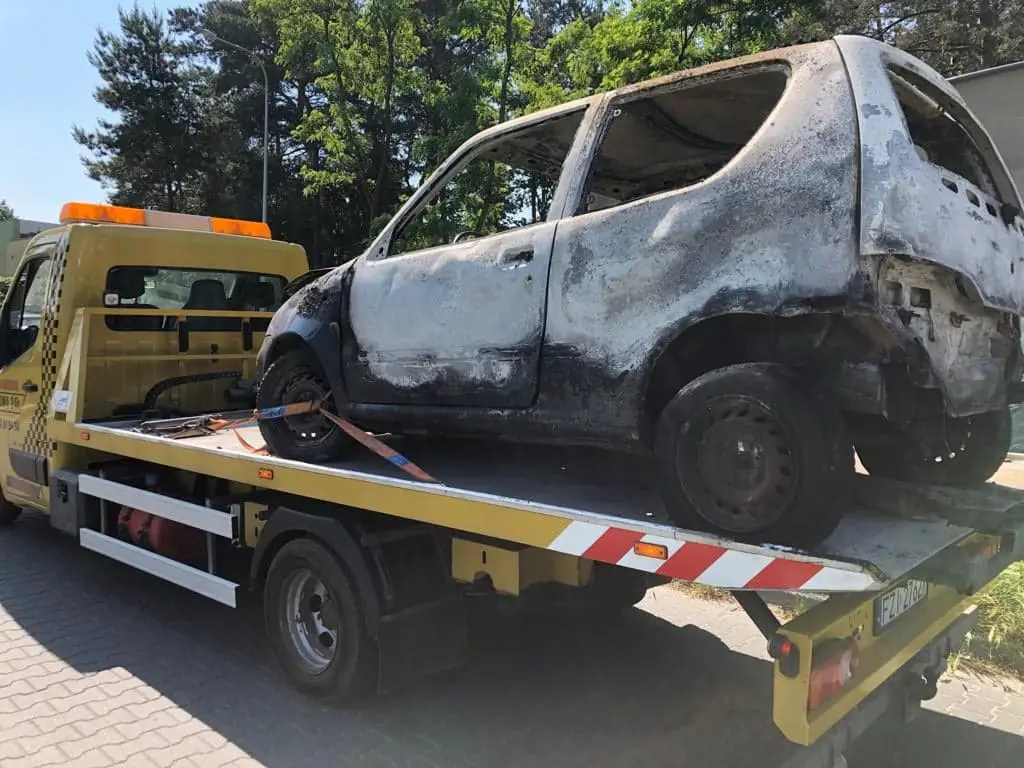 Spalonym samochodem zajęła się straż miejska. Na miejsce została wezwana pomoc drogowa. – Na polecenie straży miejskiej spalony samochód został odholowany – mówi Marek Dziubałka z pomocy drogowej Maxmar.