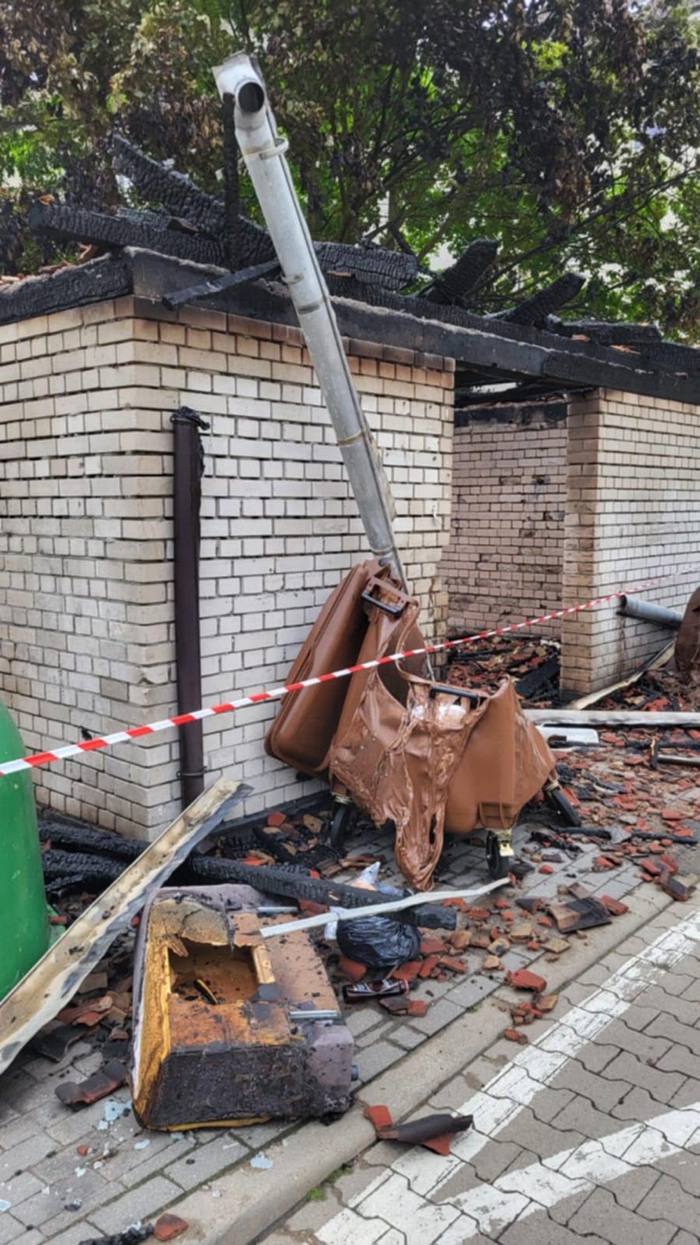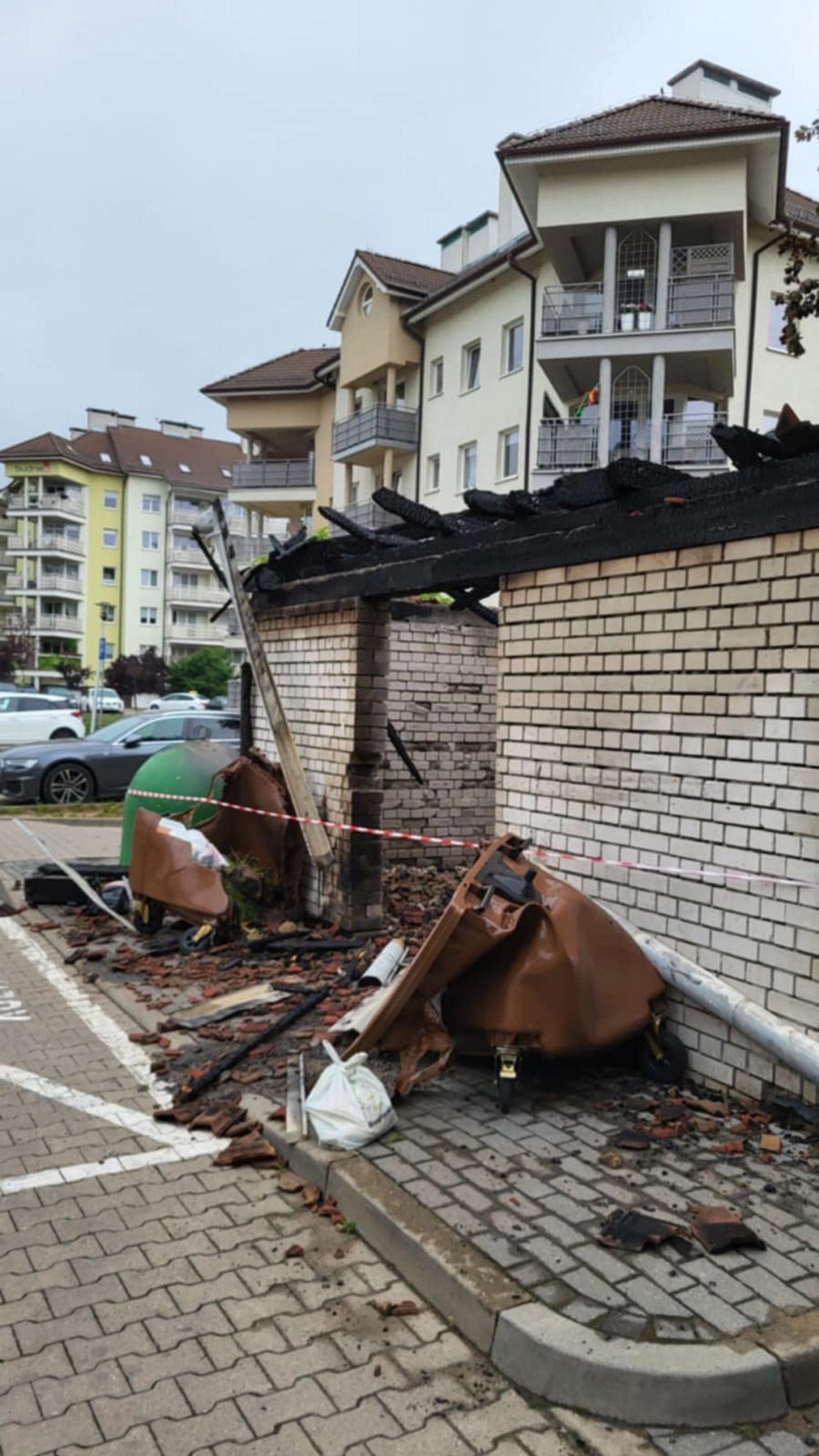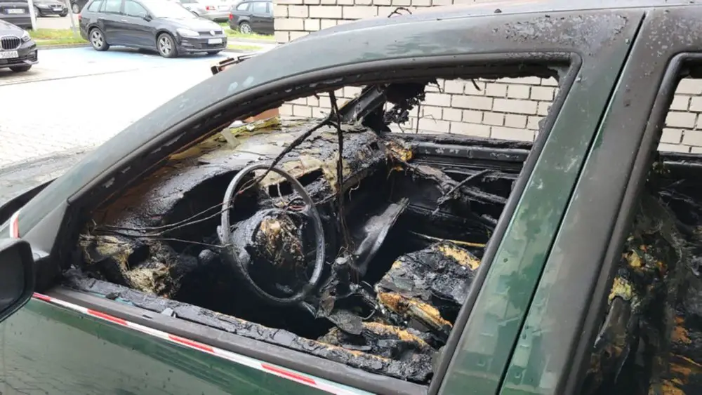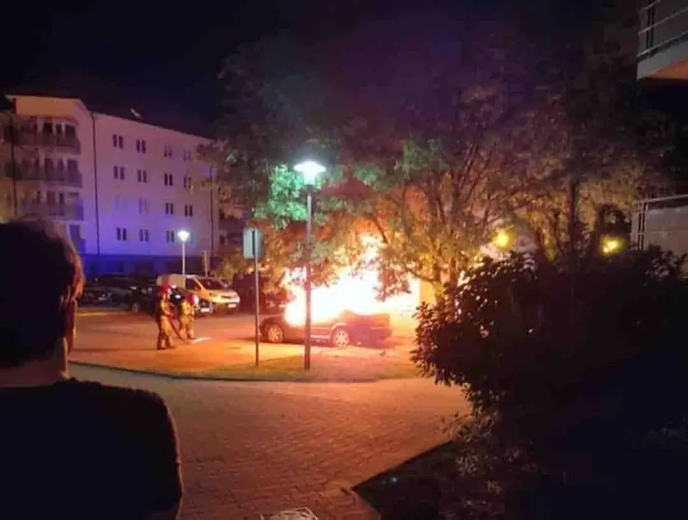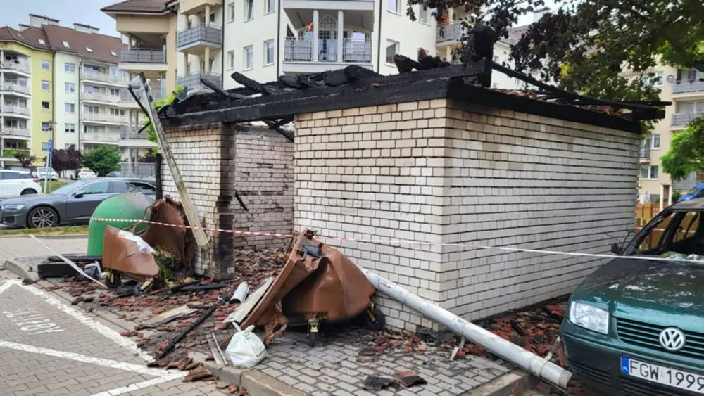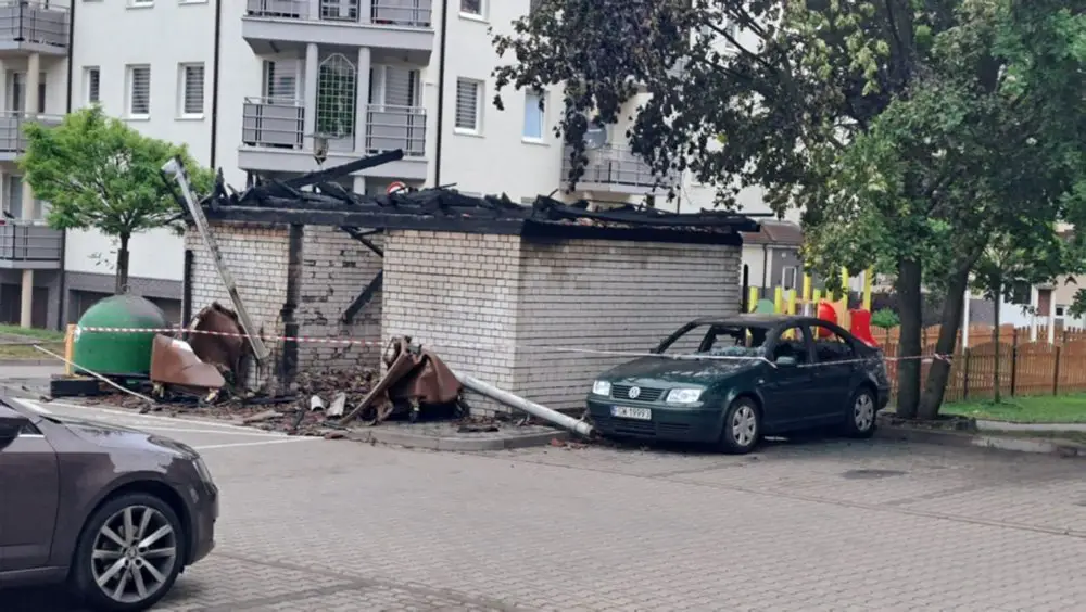 Pożar śmietnika wybuchł około godz. 2.00 w nocy. Płomienie przeniosły się również na zaparkowanego obok volkswagena. Kiedy wezwana straż pożarna dojechała na miejsce cała wiata była już w ogniu. Płonął również samochód. Strażacy ugasili pożar. Wiata śmietnikowa oraz samochód do niczego się już nie nadają. To było podpalenie. Niestety straty są duże.