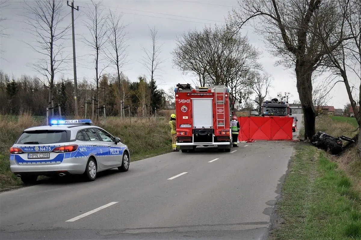 Do śmiertelnego wypadku doszło w Bałdowie (woj. pomorskie). Renault uderzyło w drzewo. Samochód spłonął. Na miejscu zginął 34-letni kierowca.