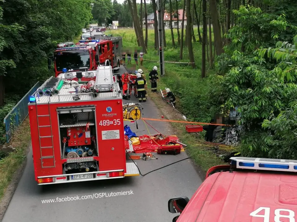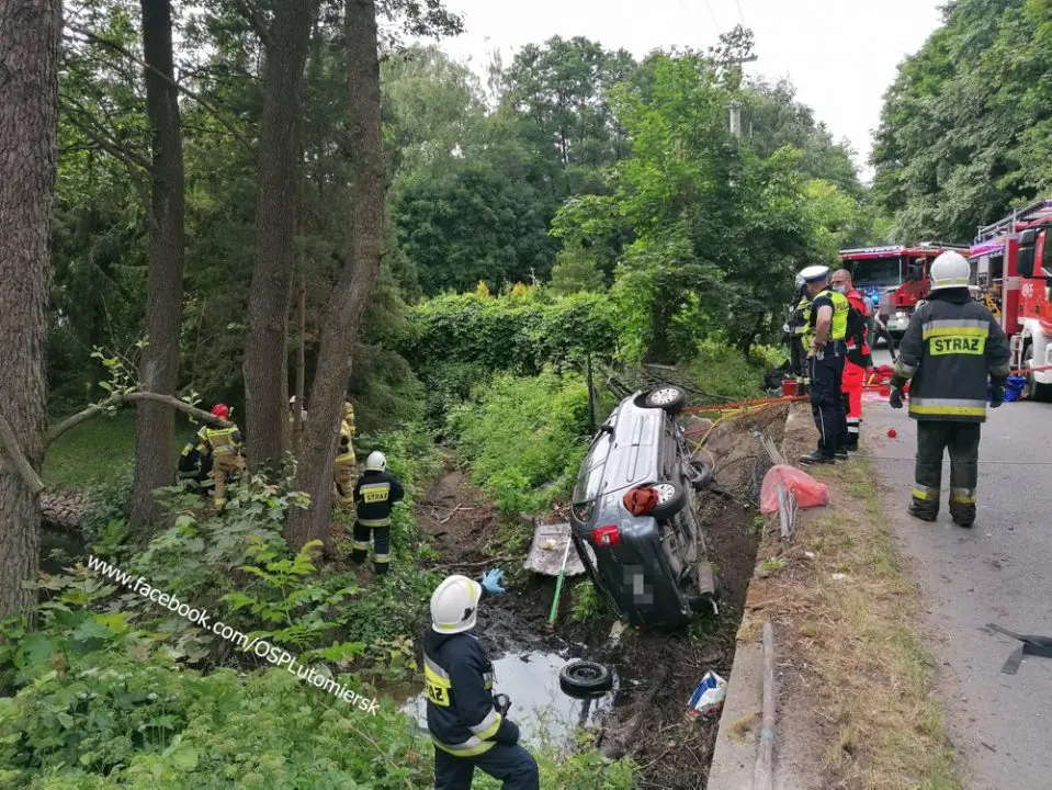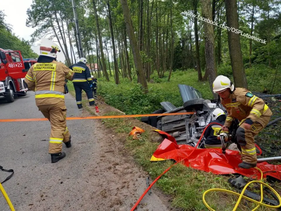 Na miejsce szybko dotarły służby ratunkowe. Strażacy zabezpieczyli citroena i sprzętem hydraulicznym dostali się do ciężko rannej kobiety.