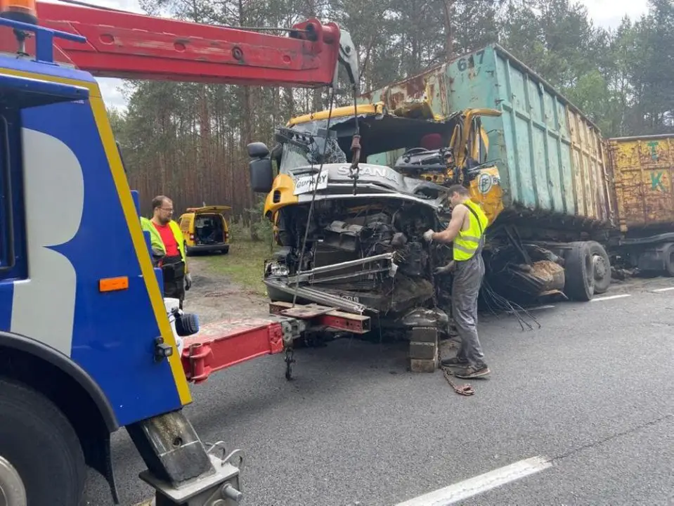 Na miejscu wypadku cały czas trwa podnoszenie ciężarówek. Droga cały czas jest zablokowana. – Scania została już odholowana – powiedział nam kilka minut pod godzinie 14.00 Marek Dziubałka z pomocy drogowej Maxmar w Zielonej Górze. Trwa podnoszenie mana.