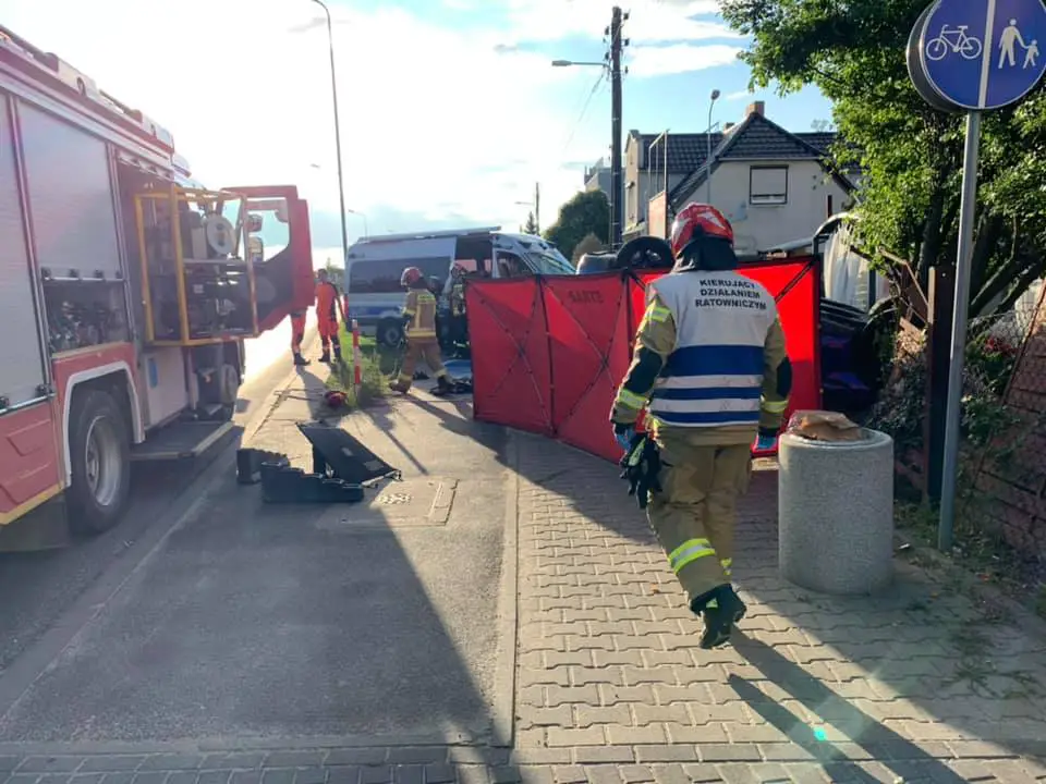 Do śmiertelnego wypadku doszło w czwartek, 2 września, na skrzyżowaniu ulic Kościańskiej i Ostatniej w Poznaniu. Samochód wpadł na posesje i dachował. Zmiażdżył rowerzystę.