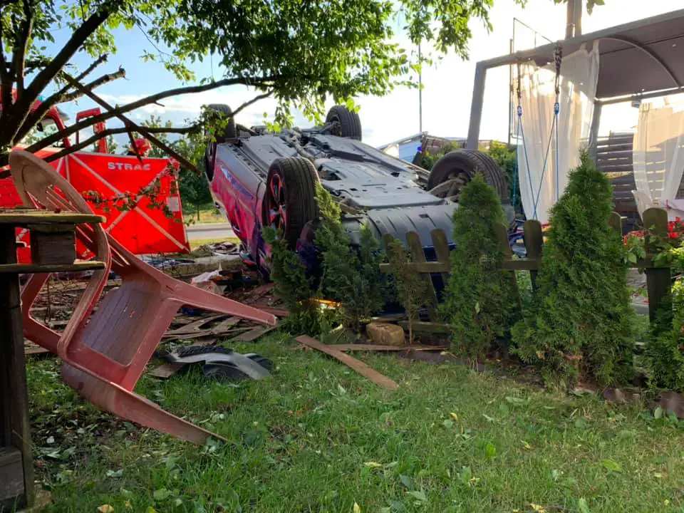 Rozpędzony jaguar wpadł w poślizg. Samochód wypadł z drogi i dachował. Wczesnej potrącił i zmiażdżył rowerzystę.