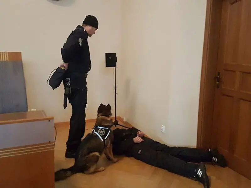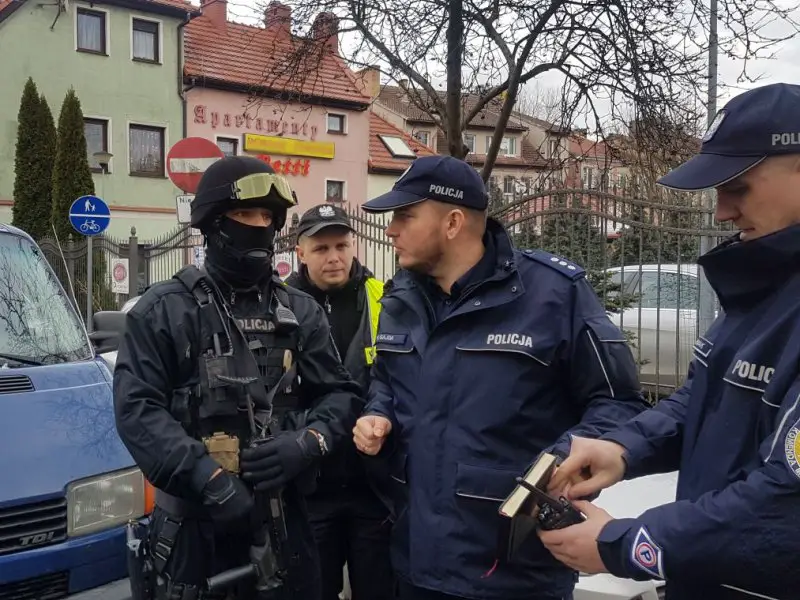 Niestety okazało się, że mężczyzna prawdopodobnie posiada przy sobie urządzenie wybuchowe, dlatego do działań wezwany został pirotechnik z psem do wykrywania materiałów wybuchowych. W związku z zagrożeniem eksplozji urządzenia wybuchowego i bezpośrednim zagrożeniem zdrowia i życia, z budynku ewakuowane zostały wszystkie osoby.