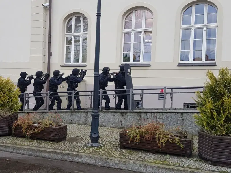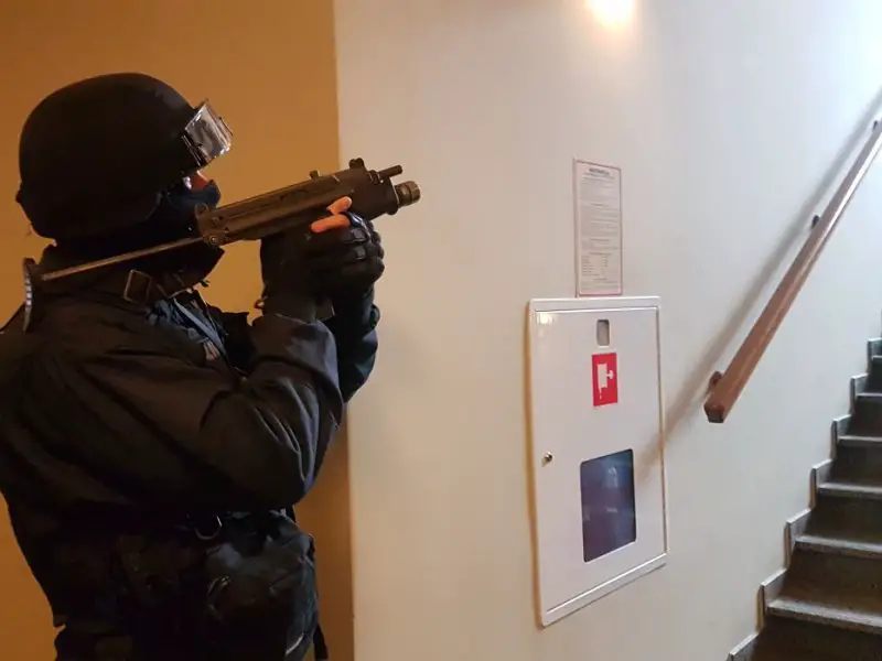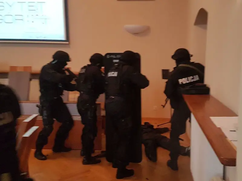 Napastnik z bronią automatyczną wtargnął na teren Uniwersytetu Zielonogórskiego i zaczął strzelać do studentów oraz pracowników. Na szczęcie to tylko założenie do ćwiczeń przeprowadzonych w poniedziałek,11 grudnia, przez zielonogórskich policjantów na terenie budynku rektoratu Uniwersytetu Zielonogórskiego.