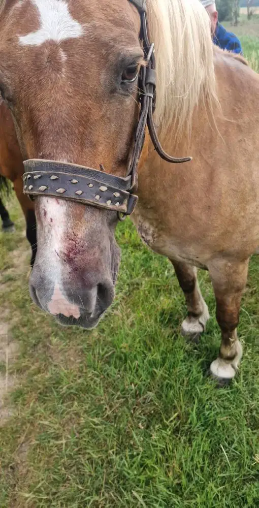 Dziś, dwa agresywne psy w typie amstafa nie miały nic. Poniżej przedstawiam wam, efekt ich porannej działalności. Szkoda jedynie, że właściciele piesków nie poczuwają się do winy. Mam nadzieję, że chociaż wyciągną wnioski. Ponadto, policja i straż miejska zostały poinformowane o zaistniałej sytuacji, a sprawa jest rozwojowa. Ze swojej strony, chciałbym ogromnie podziękować zaangażowanym w pomoc przy poszukiwaniu koników, wszelkie przekazywane informacje i dostarczone środki opatrunkowe.