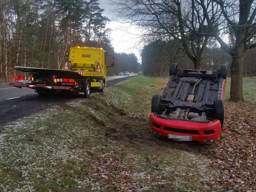 Do dachowania doszło w poniedziałek, 25 marca, na trasie Gorzów- Krzeszyce. Kierująca suzuki wpadła w poślizg i dachowała na poboczu.