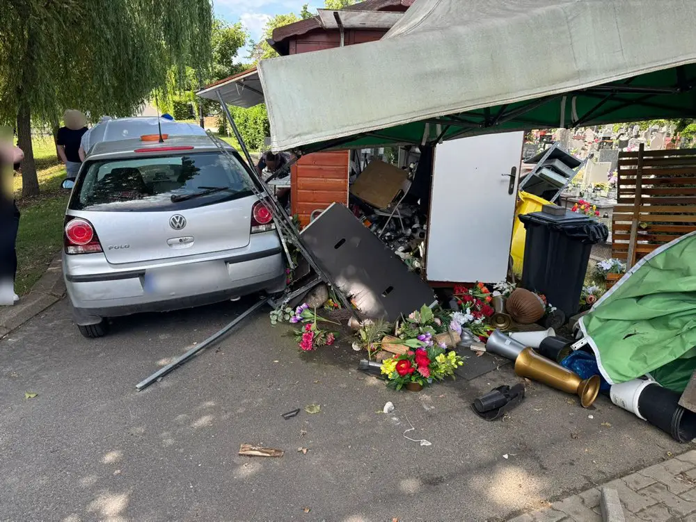 W Świebodzinie doszło do groźnego zdarzenia. Miało miejsce za drogą publiczną, na terenie cmentarza komunalnego. Kierujący volkswagenem 82-latek, podczas wjeżdżania na cmentarz, najprawdopodobniej pomylił „gaz z hamulcem”. W efekcie tego gwałtownie wjechał w kiosk. W tym czasie sklep był otwarty, a w środku była sprzedająca kobieta. – Szczęśliwie nic jej ani kierującemu się nie stało, jednak doszło stworzenia zagrożenia oraz strat materialnych – mówi asp. sztab. Marcin Ruciński, rzecznik policji w Świebodzinie.