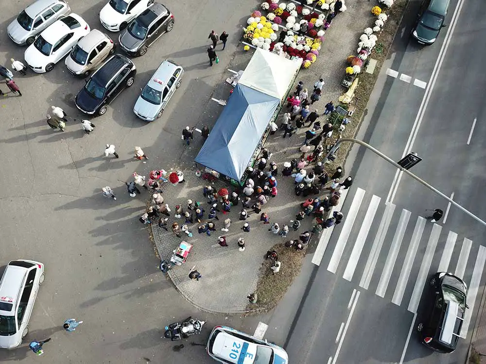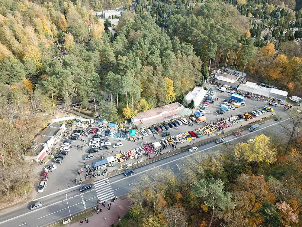 Godz. 14.15 Ruch przy cmentarzu jest duży, ale odbywa się płynie. Przybywa samochodów zaparkowanych przy nowym rondzie na wysokości ul. Pileckiego. – Są wolne miejsca na stadionie żużlowym i na parkingu przy nowym cmentarzu – mówi st. asp. Marek Kozak, naczelnik zielonogórskiej drogówki. Cały czas koruje się ul. Wrocławska do skrzyżowania z ul. Lwowską.