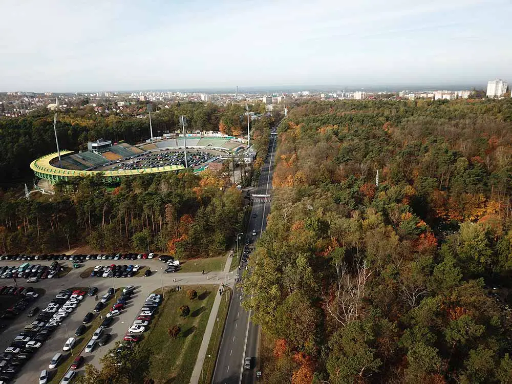 Uwaga! Na płatny parking (5 zł) na stadionie żużlowym wjeżdżamy bramą przez tzw. park maszyn. Wyjazd odbywa się dolną bramą w kierunku Raculi. Obowiązuje nakaz jazdy w prawo.