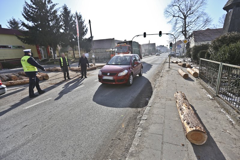 – To jak oszukać przeznaczenie – mówili świadkowie wydarzeń w Raculi. W naczepie ciężarówki podczas jazdy puściły mocowania przytrzymujące drewniane bele. – Gdyby to spadło na pieszego to nie byłoby mowy o ratunku – komentowali gapie.