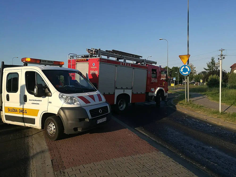 We wtorek, 22 maja, strażacy OSP Witnica zostali wezwani na obwodnicę miasta. Na jezdni miała być rozlana nieznana substancja. Kiedy dojechali na miejsce zobaczyli, że asfalt przyczepił się do opon ich wozu.